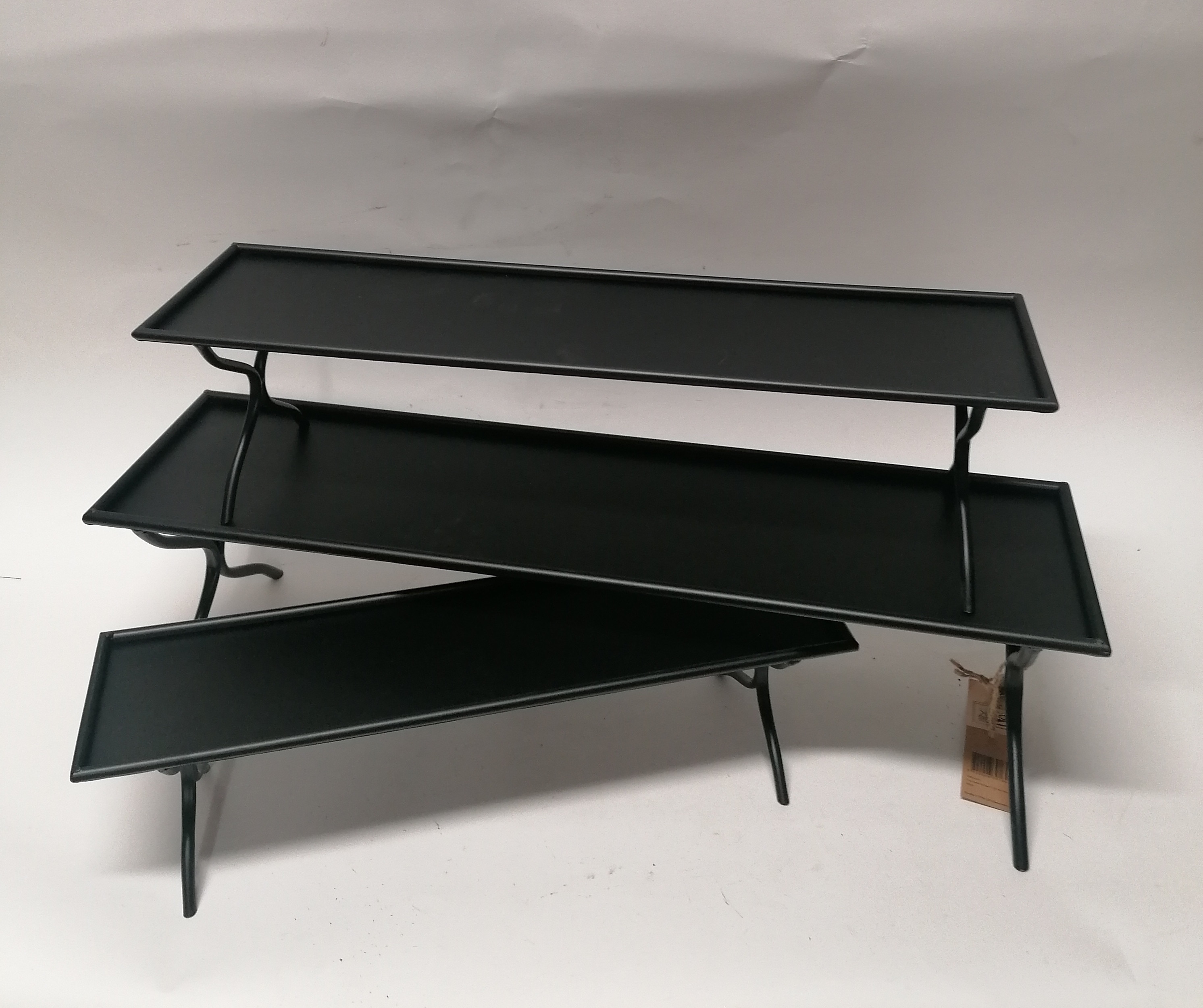 Súprava 3 dlhých kovový podnosov na nôžkach.  Svojou čiernou farbou vytvára moderný štýlový dekoračný doplnok vášho domova a záhrad.
