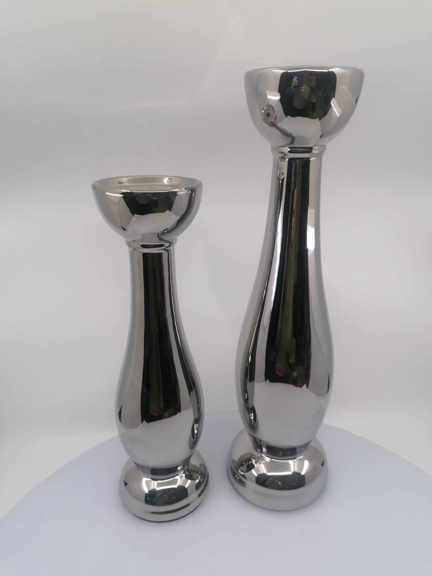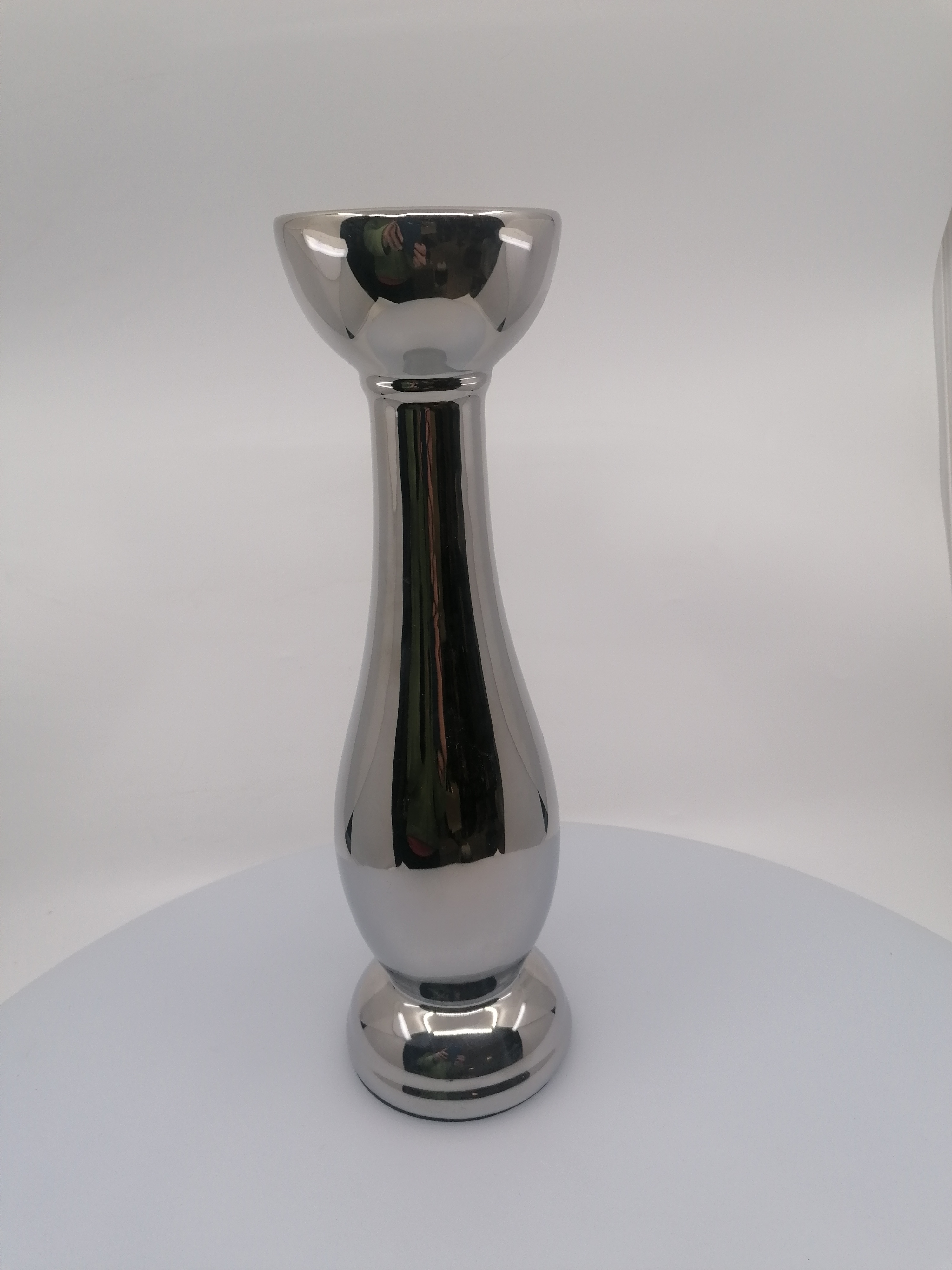 Svietnik keramický, strieborný, rozmery: 31 cm, priemer na sviečku: 7 cm