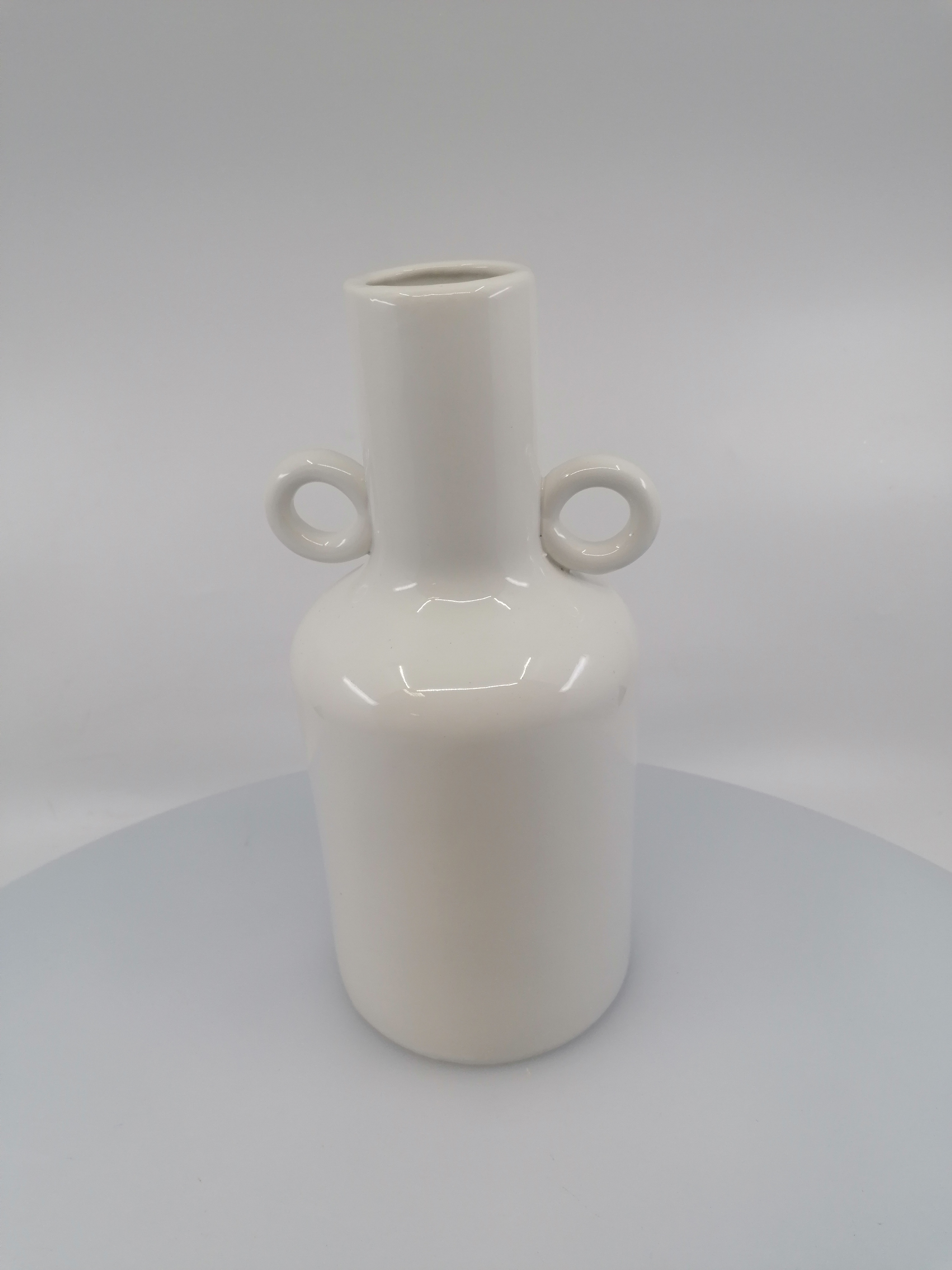 Kreatívna dekoračná keramická váza v bielom dizajne. Svojim moderným tvarom s úzkym hrdlom tvorí štýlovým dekoratívny doplnok  do každého interiéru.