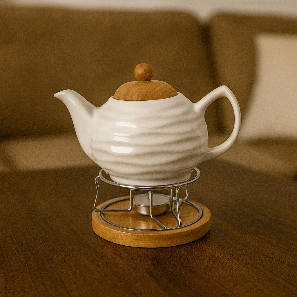 Čajník so zohrievačom, biely.