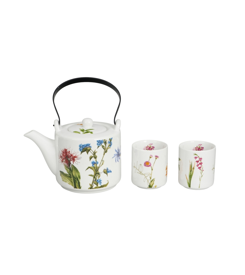 Nerezová čajová kanvica COLOR OF NATURE s nálevníkom a dvoma šálkami je súčasťou rady Flowers Classic. Je vyrobená z porcelánu a môže sa pochváliť prirodzenou krémovo bielou farbou s jemným leskom, výnimočnou pevnosťou a odolnosťou, pričom si zachováva ľahký a elegantný vzhľad.