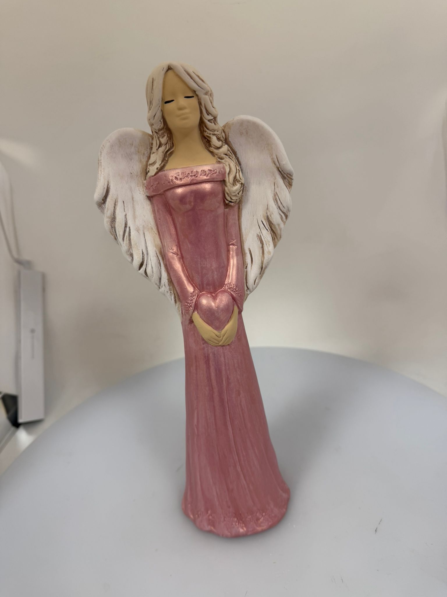 Dekoračný anjel ALEXIS, perleťovo-ružový, vhodný do interiéru.