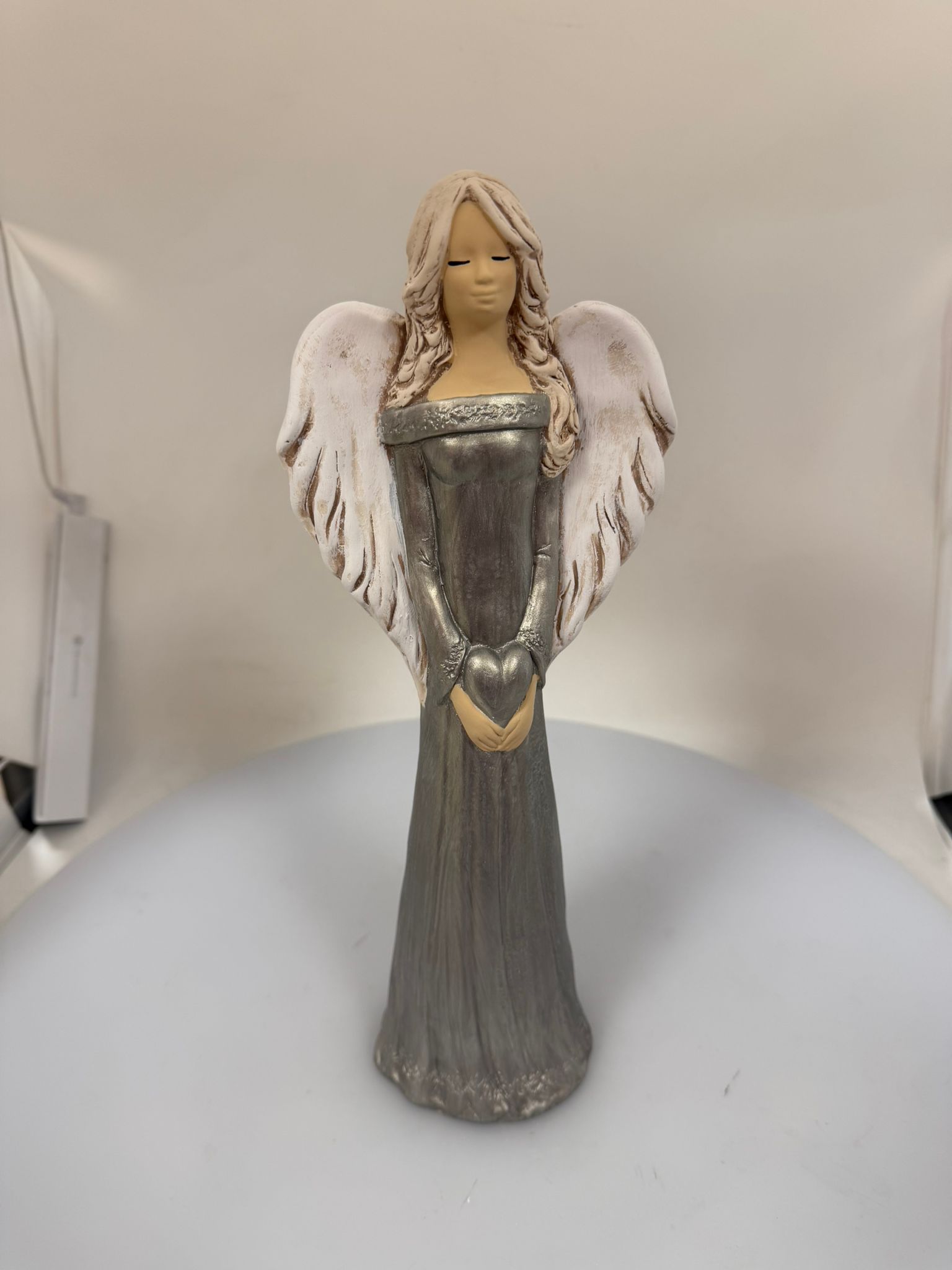 Dekoračný anjel ALEXIS, perleťovo-sivý, vhodný do interiéru.