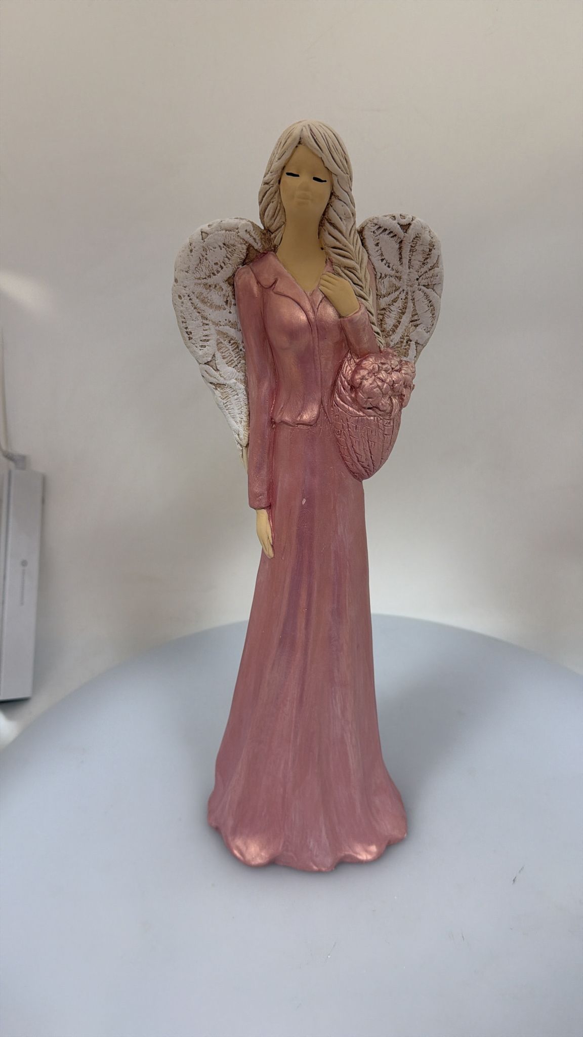 Dekoračný anjel VALERIA, ružová perleť, 39x13 cm
