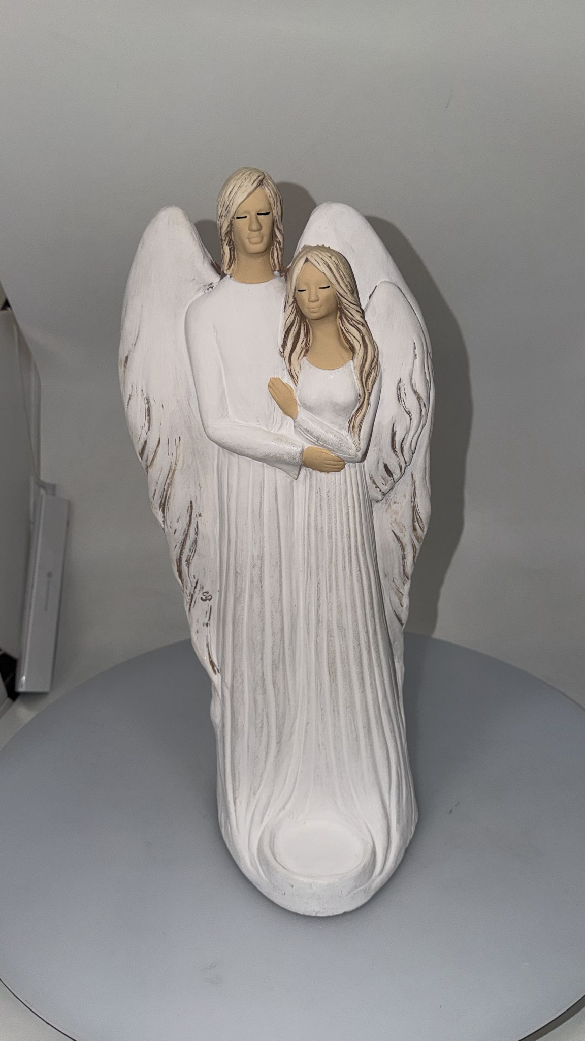 Veľký dekoračný svietnik na čajovú sviečku v tvare anjelského  páru , ručne kvalitne spracovaný zo sadry vhodný ako dekorácia do interiéru, alebo ako darček.