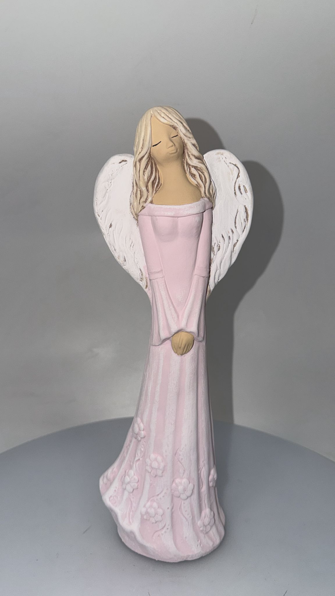 Dekoračný sádrový anjel ANIELKA, ružový, 37x13 cm
