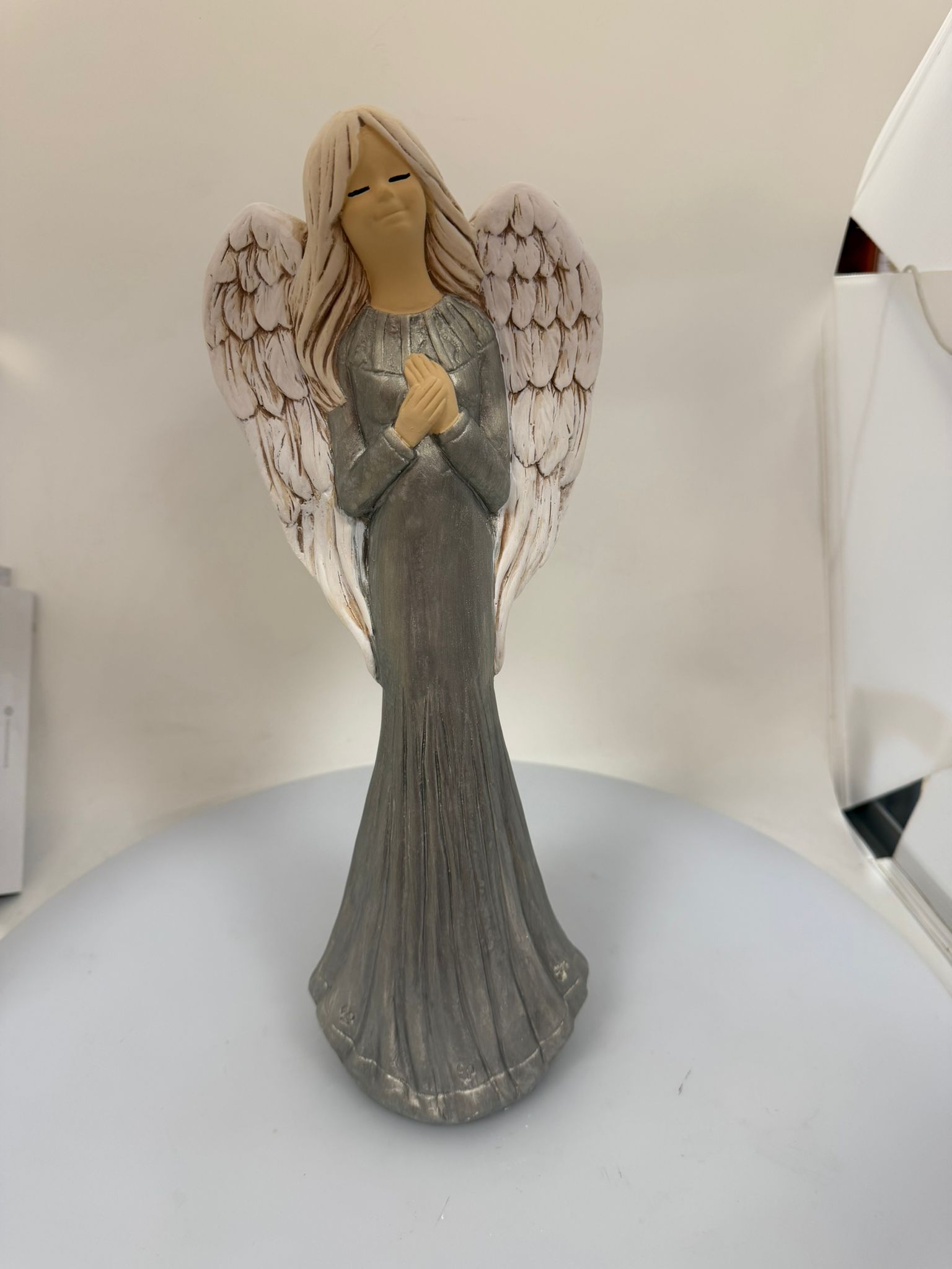 Dekoračný sádrový anjel, FIONA, perleť - sivá, 38x14 cm