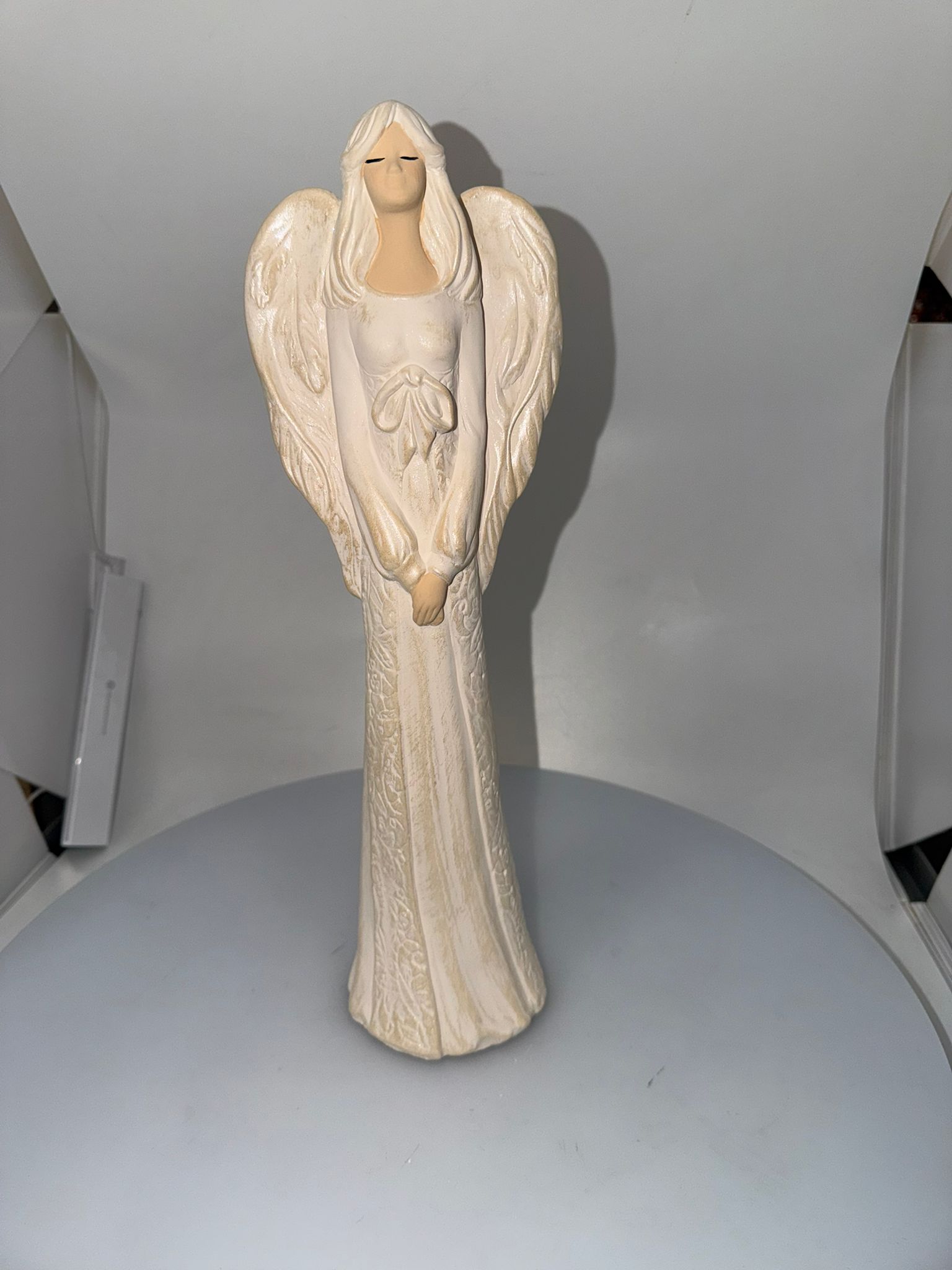 Dekoračný sadrový anjel, ručne kvalitne spracovaný vhodný ako dekorácia do interiéru, alebo ako darček.