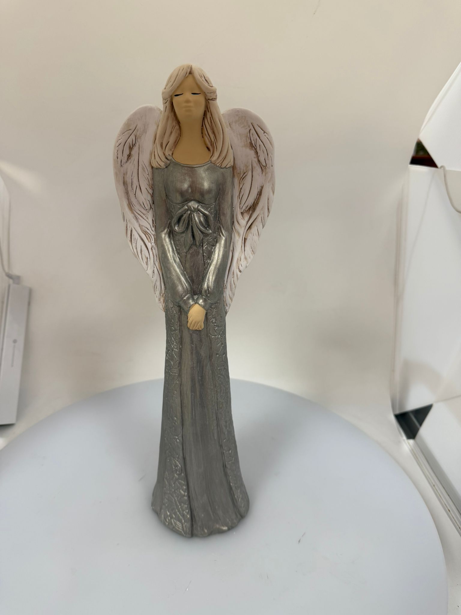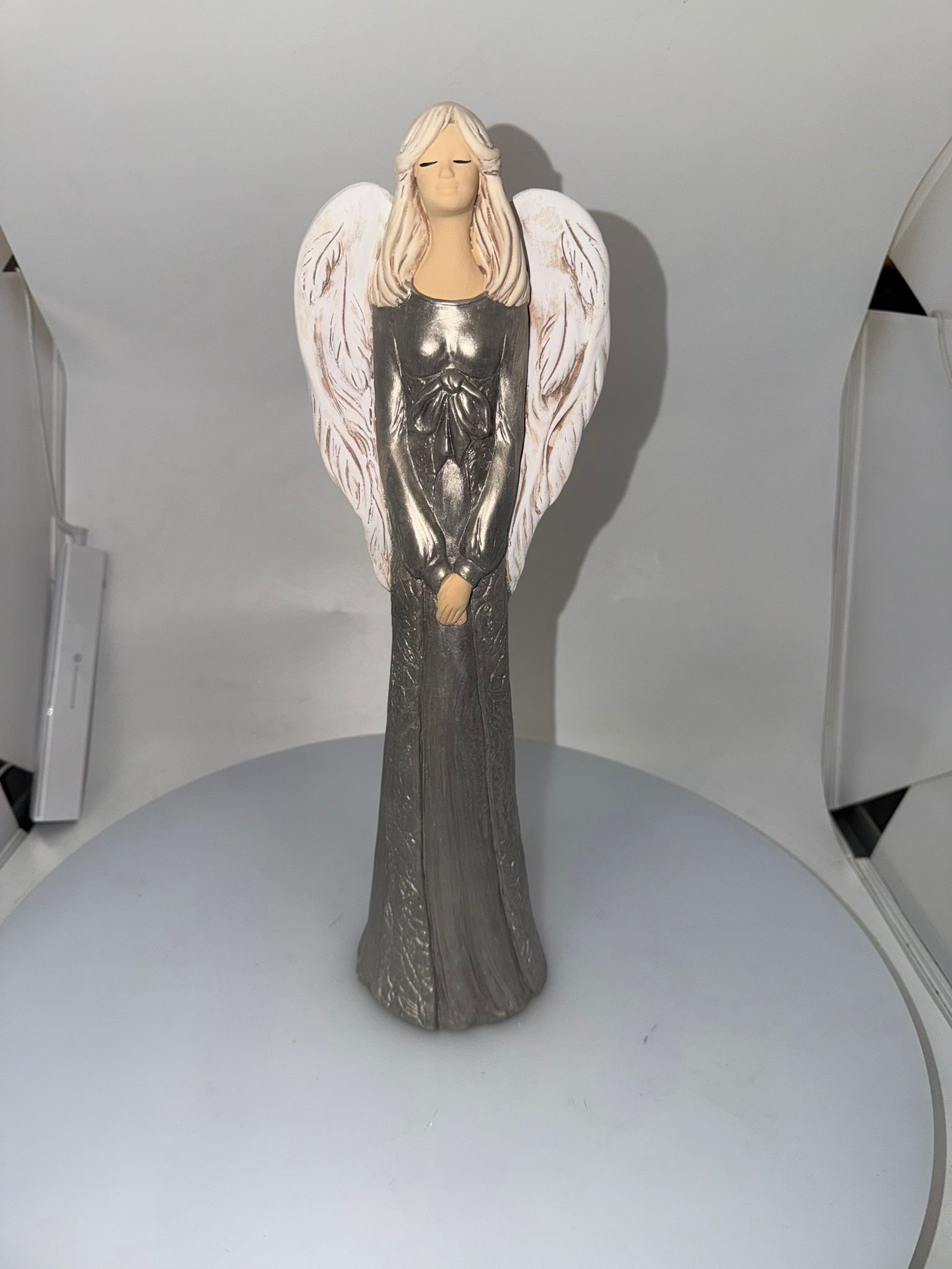 Dekoračný sadrový anjel HANNA, sivá perleť, 40x13 cm