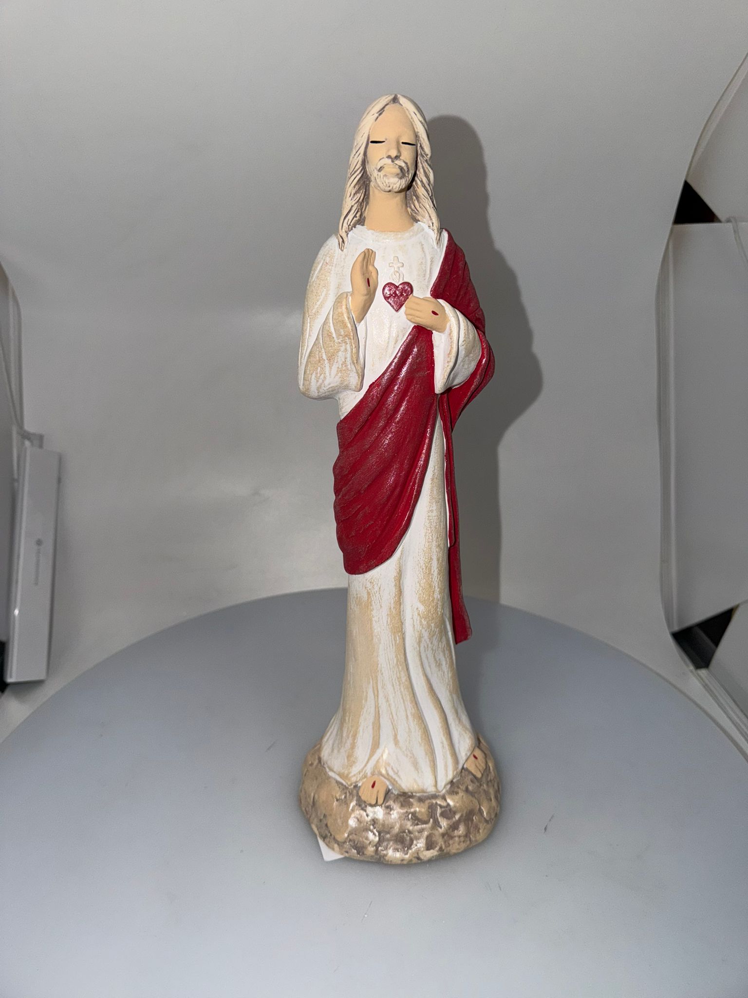 Dekoračný sádrový anjel, Ježiš so srdcom,bielo - červený, 38x12 cm
