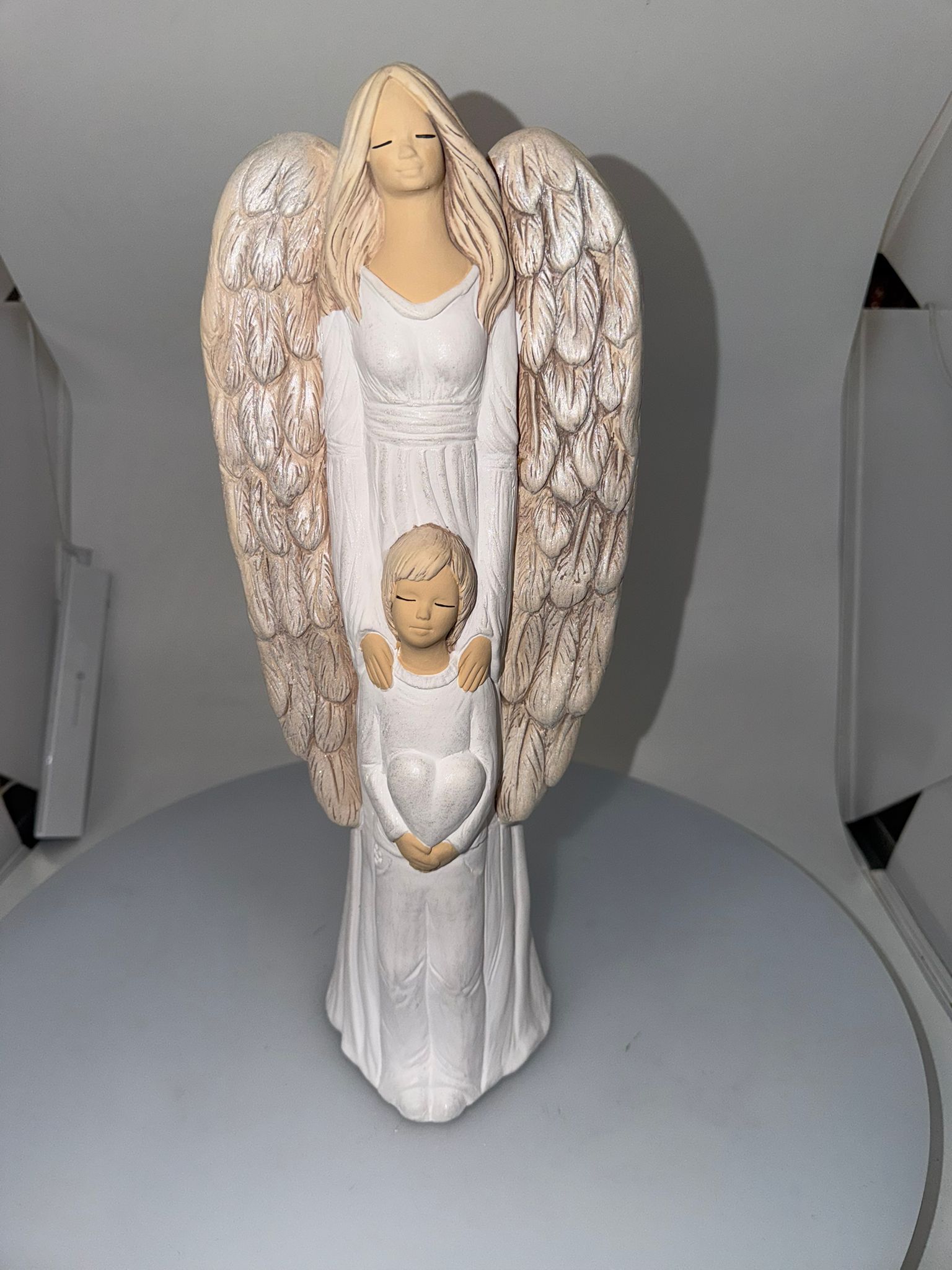 Dekoračný sádrový anjel, KARINA s chlapcom, 40x16 cm