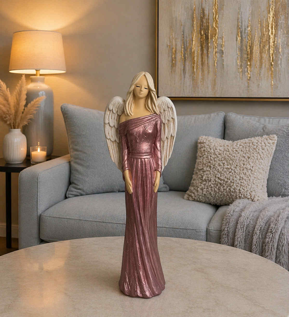 Dekoračný sadrový anjel PAULA, perleť-ružový, 41x15 cm
