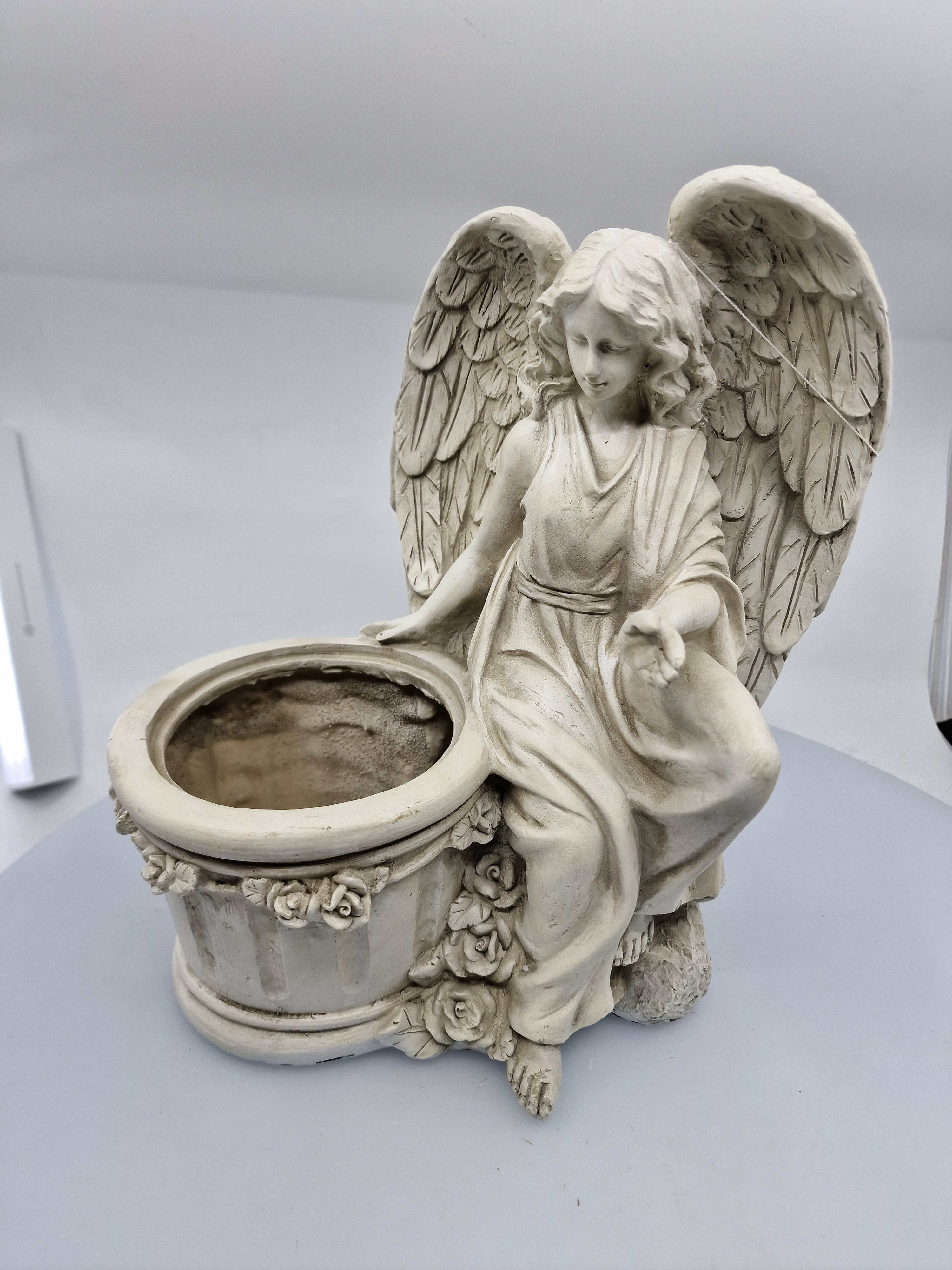 Dekoračný sediaci anjel, tmavosivý, 28x24x14 cm