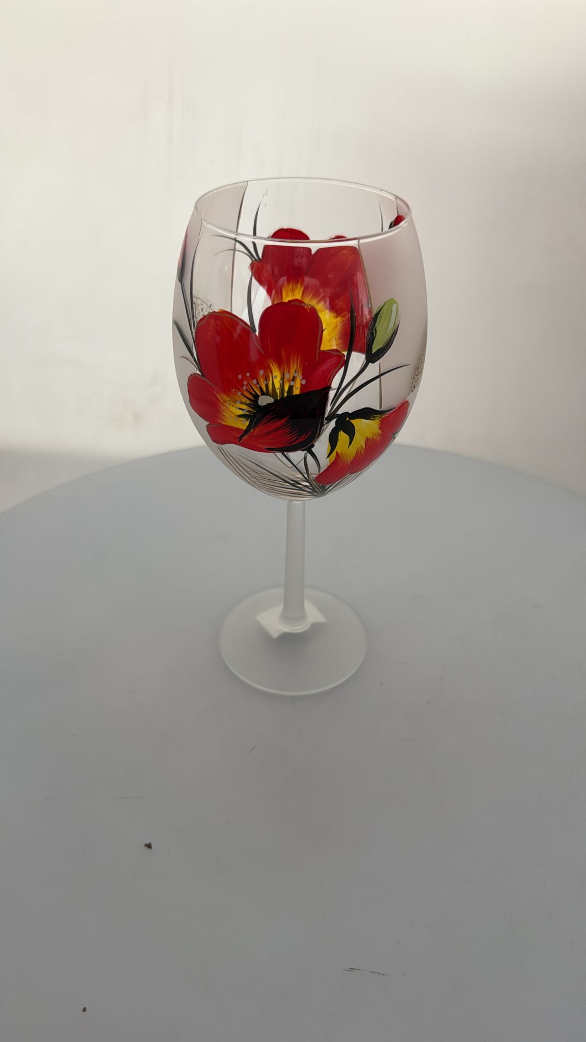 Dekorovaný pohár, sklenený, svetlý, maky, 21,5x7 cm