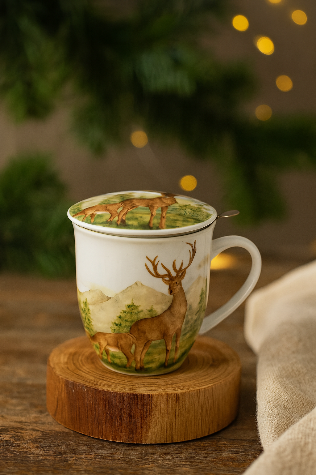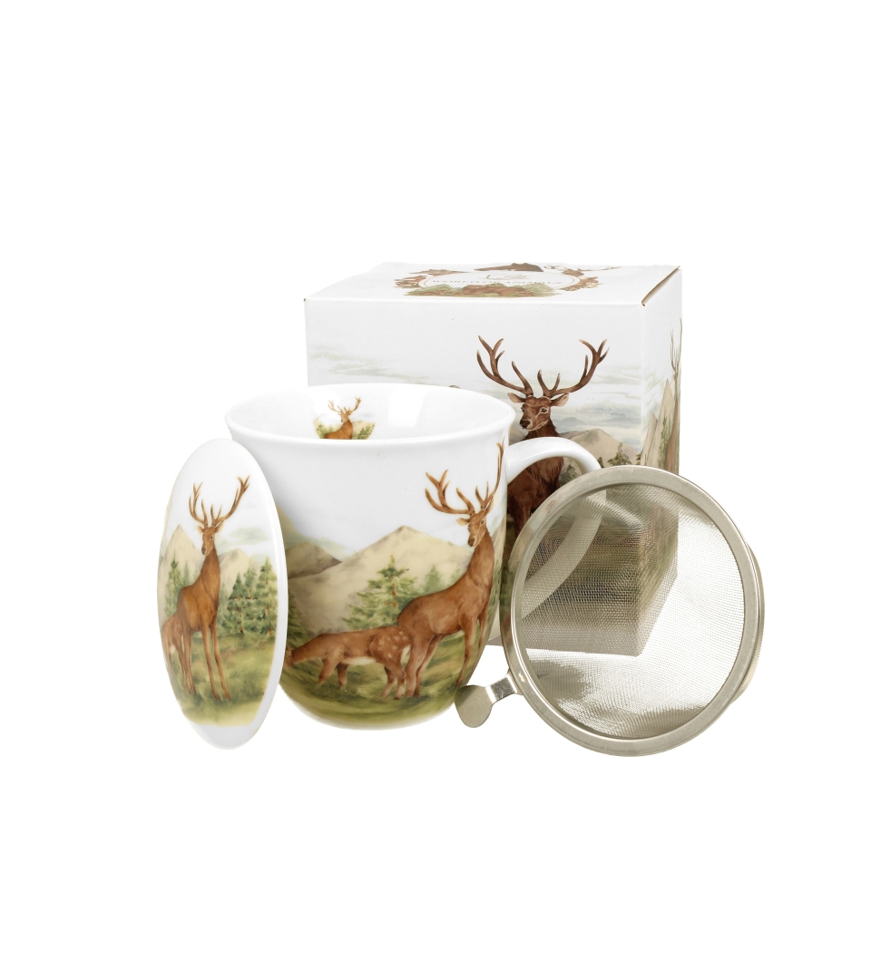 Hrnček s nálevníkom Świat Zwierząt JELENIE, ktorý je súčasťou série Animals, je vyrobený z porcelánu New Bone China, ktorý sa vyznačuje prírodnou krémovo bielou farbou s jemným leskom a výnimočnou pevnosťou a odolnosťou, pričom si zachováva ľahkosť a jemnosť.
