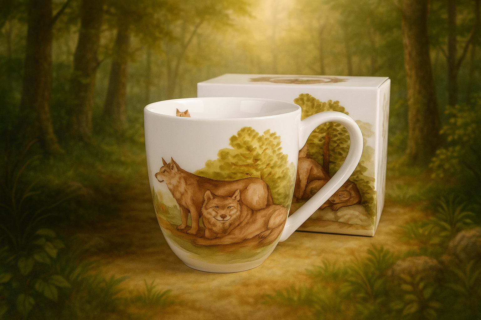 Hrnček Animal World WOLVES s objemom 1000 ml, ktorý je súčasťou rady ANIMALS, je vyrobený z porcelánu New Bone China, ktorý sa vyznačuje prírodnou krémovo bielou farbou s jemným leskom a výnimočnou pevnosťou a odolnosťou.