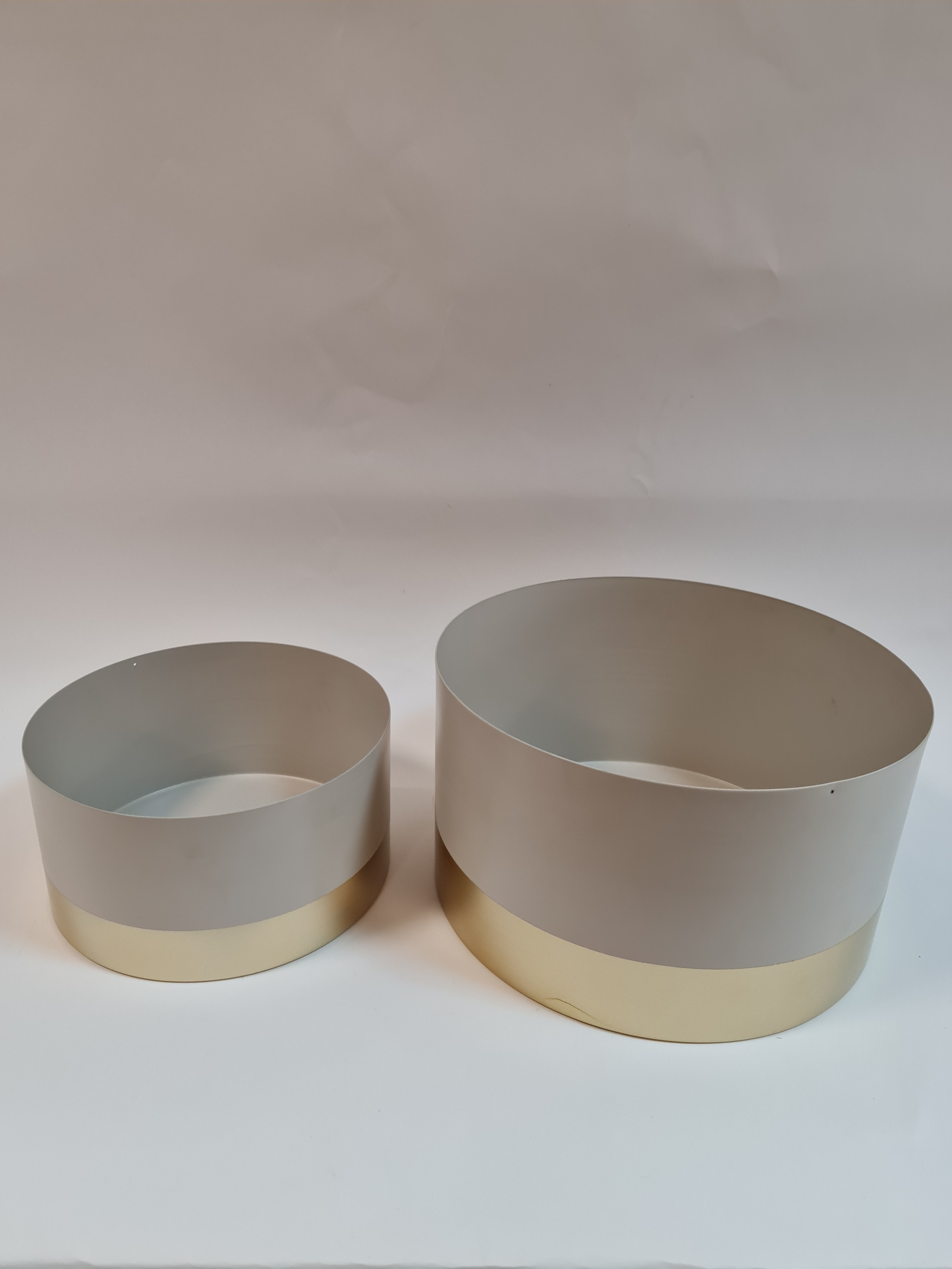 Kvetináč, kovový, béžový, so zlatým spodkom, 2 ks v sade
