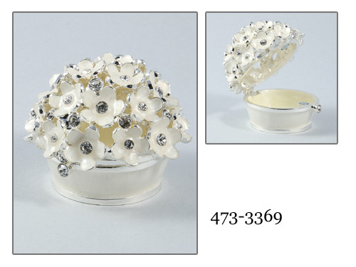 Malá luxusná okrúhla šperkovnička zdobená  korálkami s imitáciou krištáľových kameňov. Vyrobená z vysoko kvalitnej zliatiny zinku odolnej voči hrdzi. Tvorí štýlovú dekoráciu vo vašom domove na skladovanie malých šperkov.