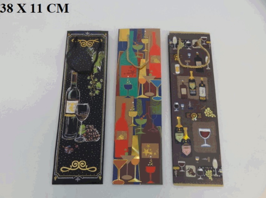 Ozdobné darčekové tašky na víno. Balenie obsahuje 12 kusov. Po 4 kusy z každého vzoru.