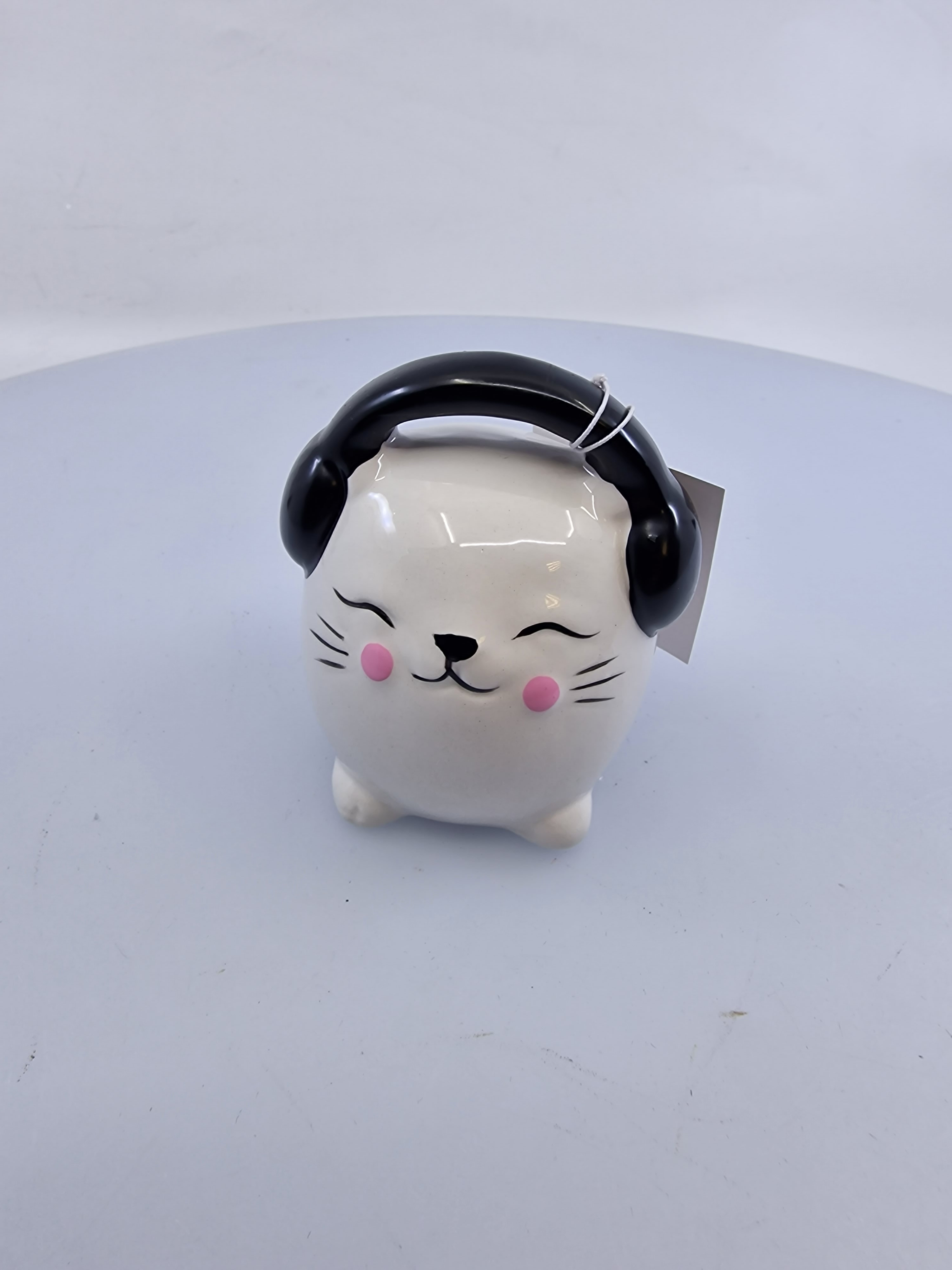 Pokladnička, mačka so slúchadlami, bieločierna