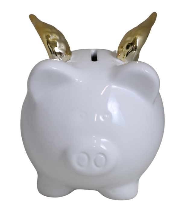 Pokladnička, prasiatko, biele so zlatými krídlami.