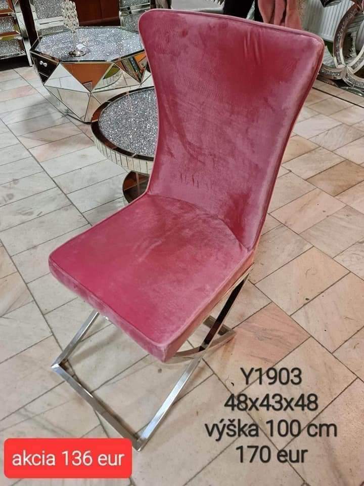 Pôsobivá stolička, ideálna na vytvorenie očarujúceho jedálenského kúta. Hlboký chrbát s gombíkmi. Charakteristická základňa z nehrdzavejúcej ocele s povrchovou úpravou z brúsenej mosadze. Pohodlné čalúnené sedadlo a operadlo s ružovým velúrovým poťahom.