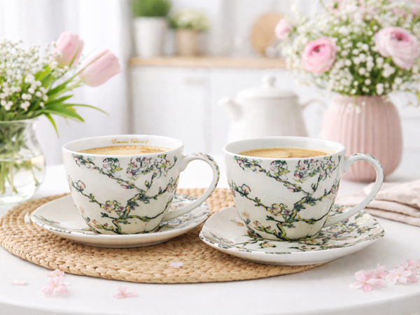 Sada dekorovaných kvetinových šálok s podšálkami a lyžičkami, svetlé, 250 ml