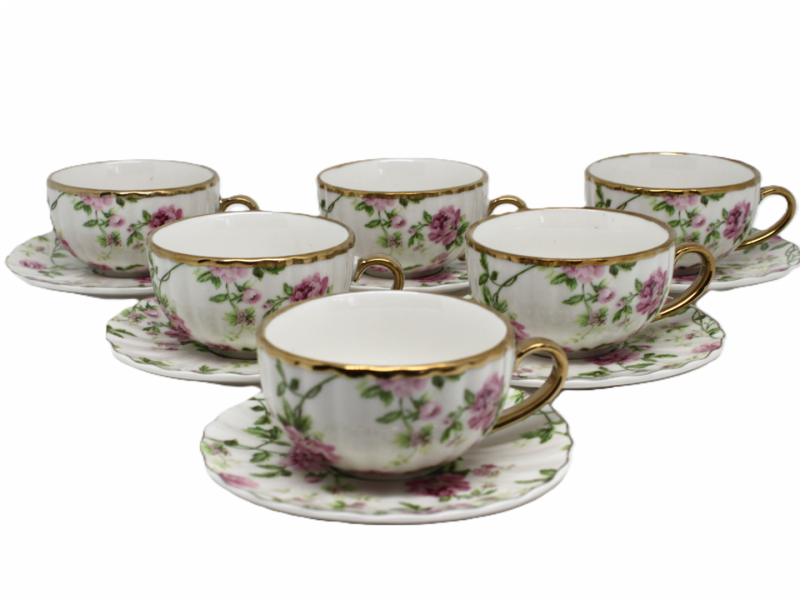 Sada espresso šálok s podšálkami, kvetinové, 6 ks v sade