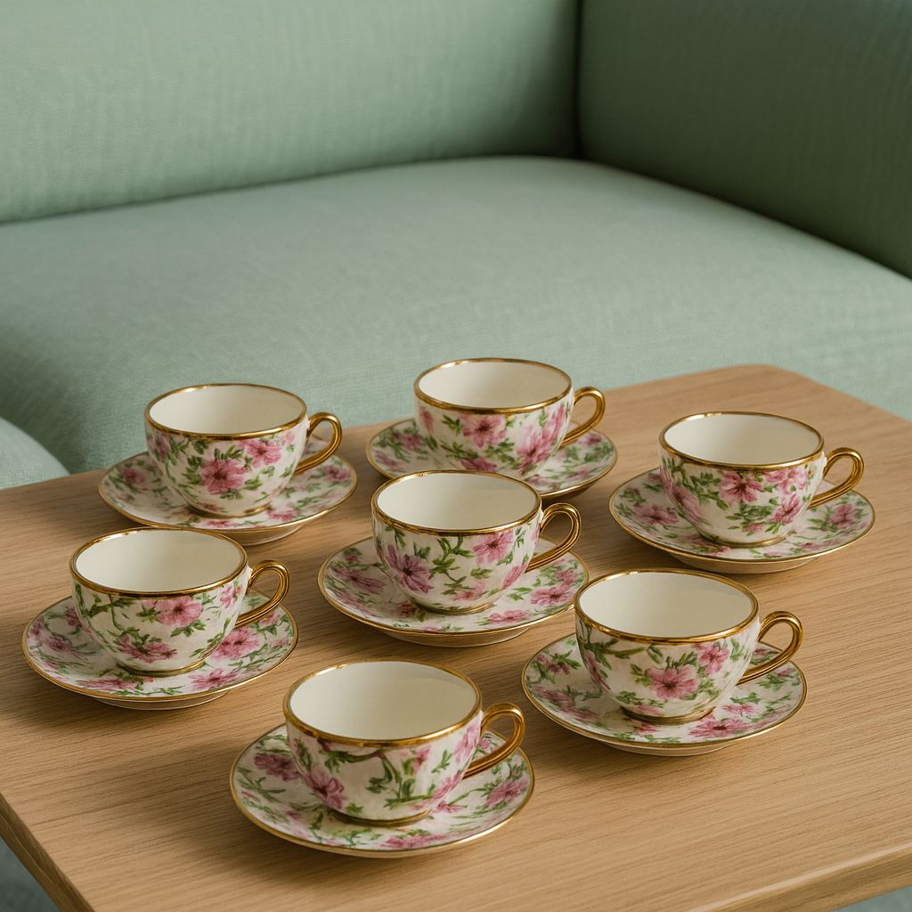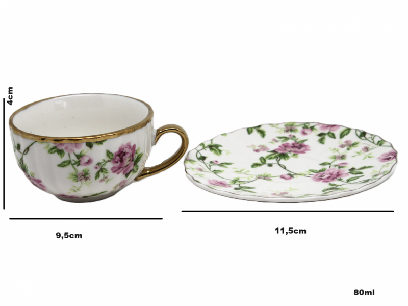 Súprava 6 porcelánových šálok na espresso, každá s ozdobným kvetinovým motívom a elegantnou podšálkou. Ideálne na podávanie silnej kávy v jedinečnom štýle. Celé je to krásne zabalené v darčekovom balení, zdôrazňujúcom jedinečnosť darčeka.