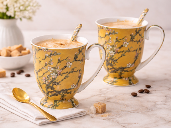 Sada kvetinových hrnčekov s lyžičkami, žlté, 300 ml