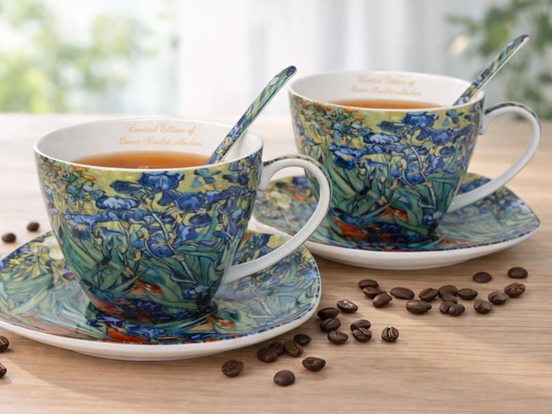 Sada kvetinových šálok s podšálkami a lyžičkami, 250 ml