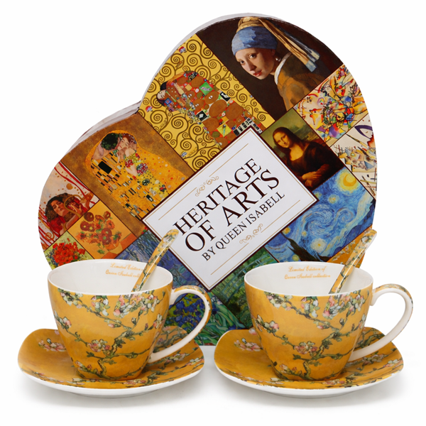 Sada kvetinových šálok s podšálkami a lyžičkami, žlté, 250 ml