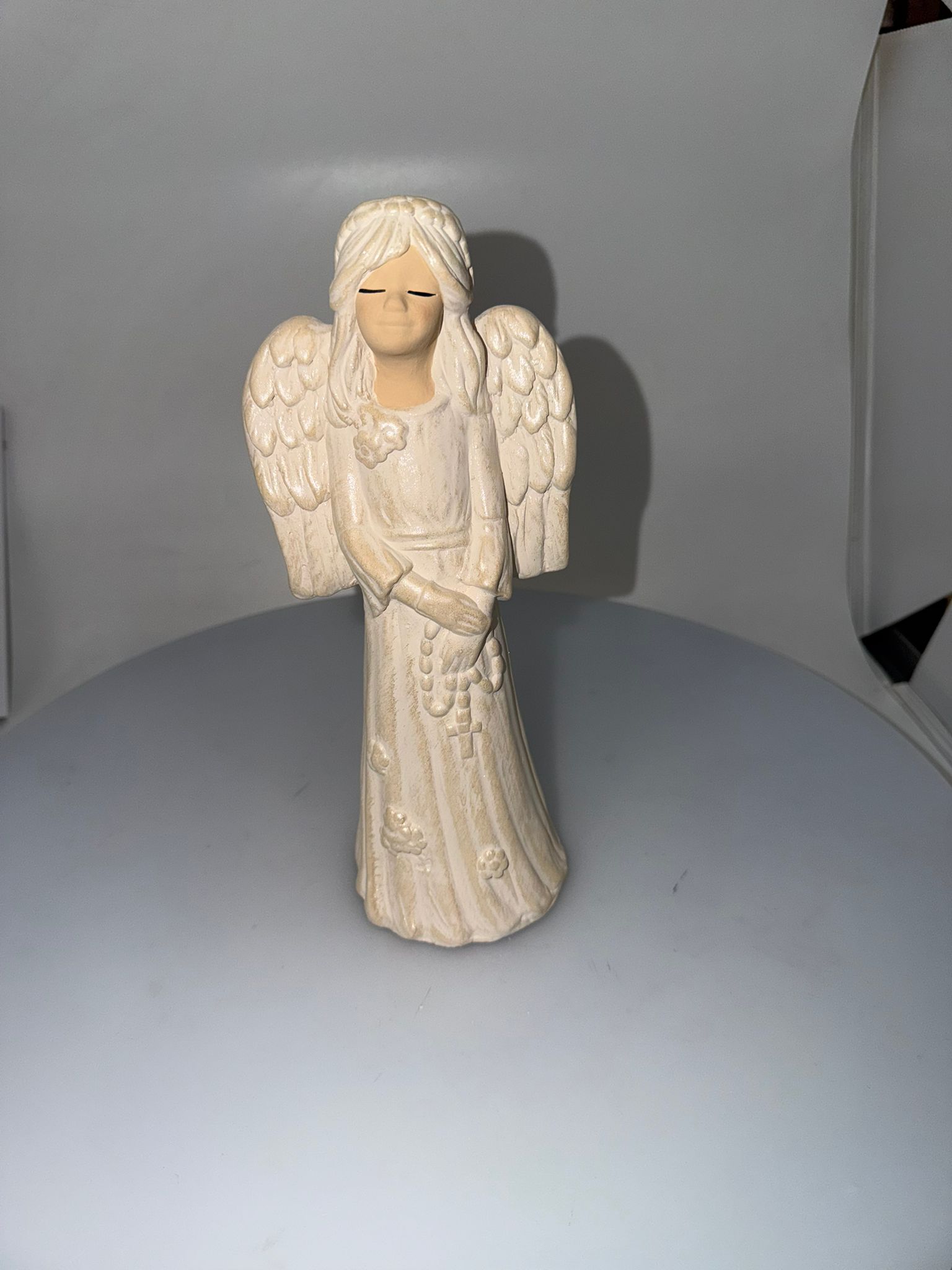 Sadrový anjel DOBRAVKA s ružencom, bielo-zlatý, 26x12 cm