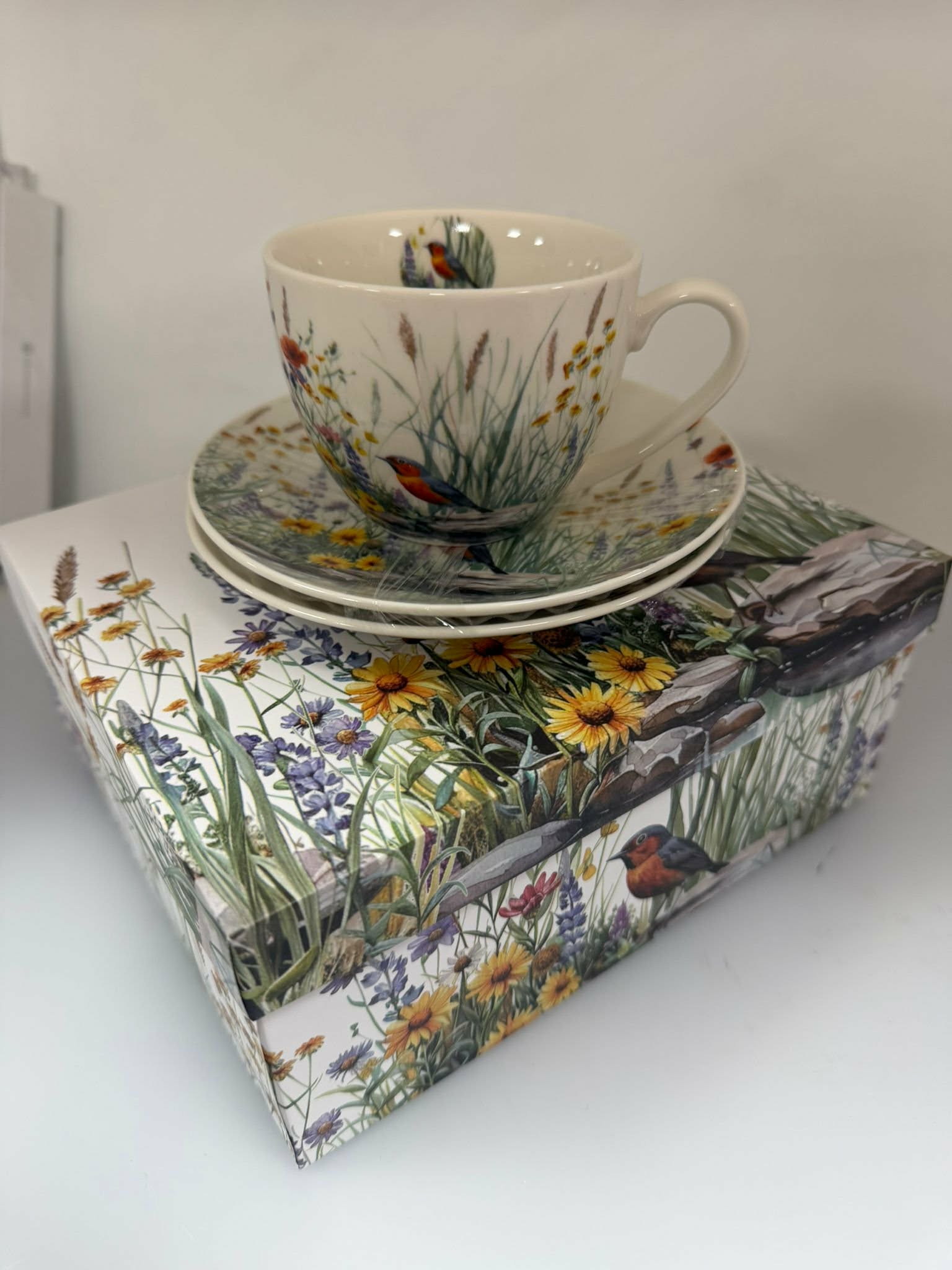 Šálka, kvetinová s 2 podšálkami, svetlá