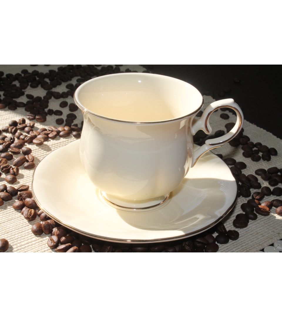 Elegantná sada dvoch porcelánových šálok s podšálkou vysokej kvality v béžovej farbe, ktoré sú doplnené zlatým lémom. Sada je balená v darčekovej krabičke. Šálka je vhodná do umývačky riadu. Neodporúča sa do mikrovlnnej rúry.