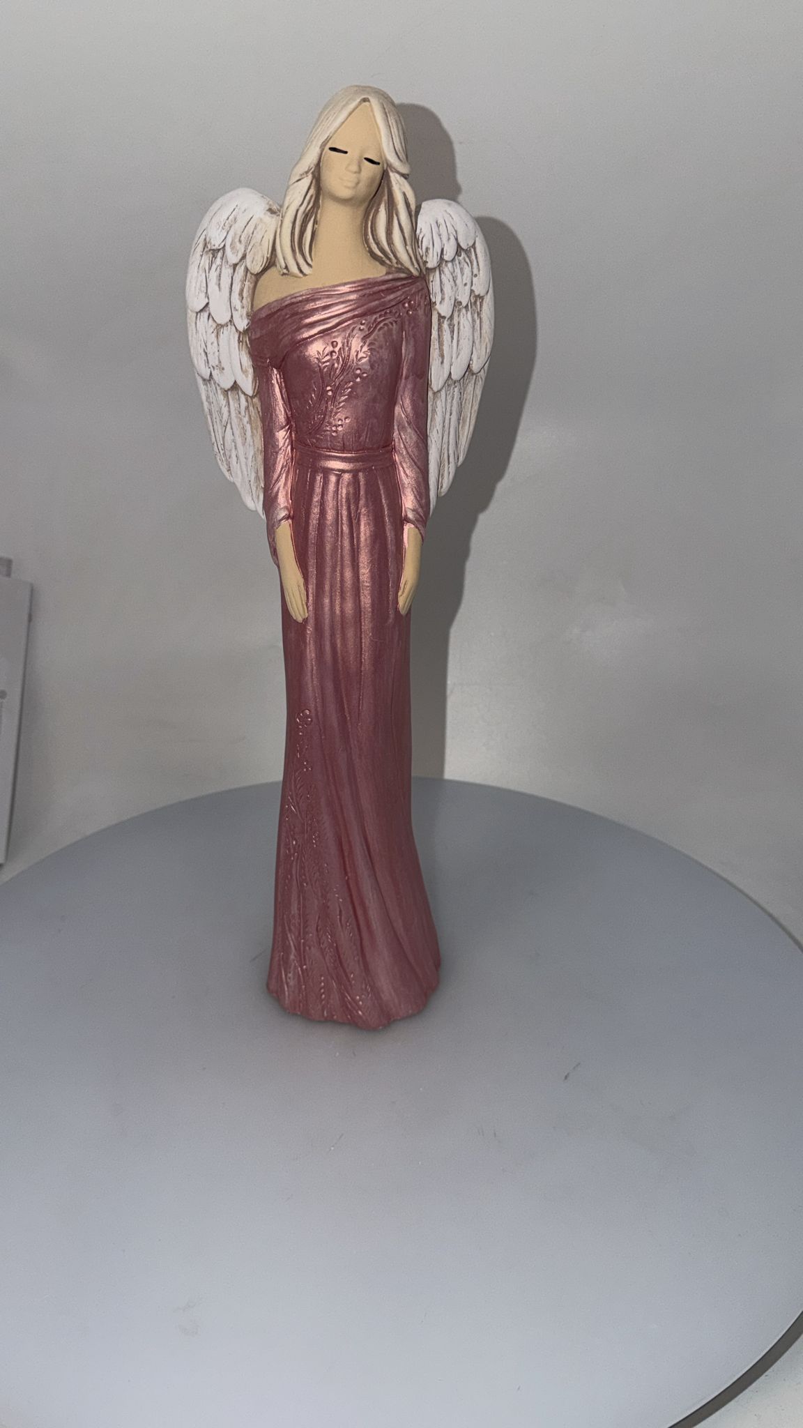 Sivý sadrový anjel PAULA, perleť-ružový, 41x15 cm