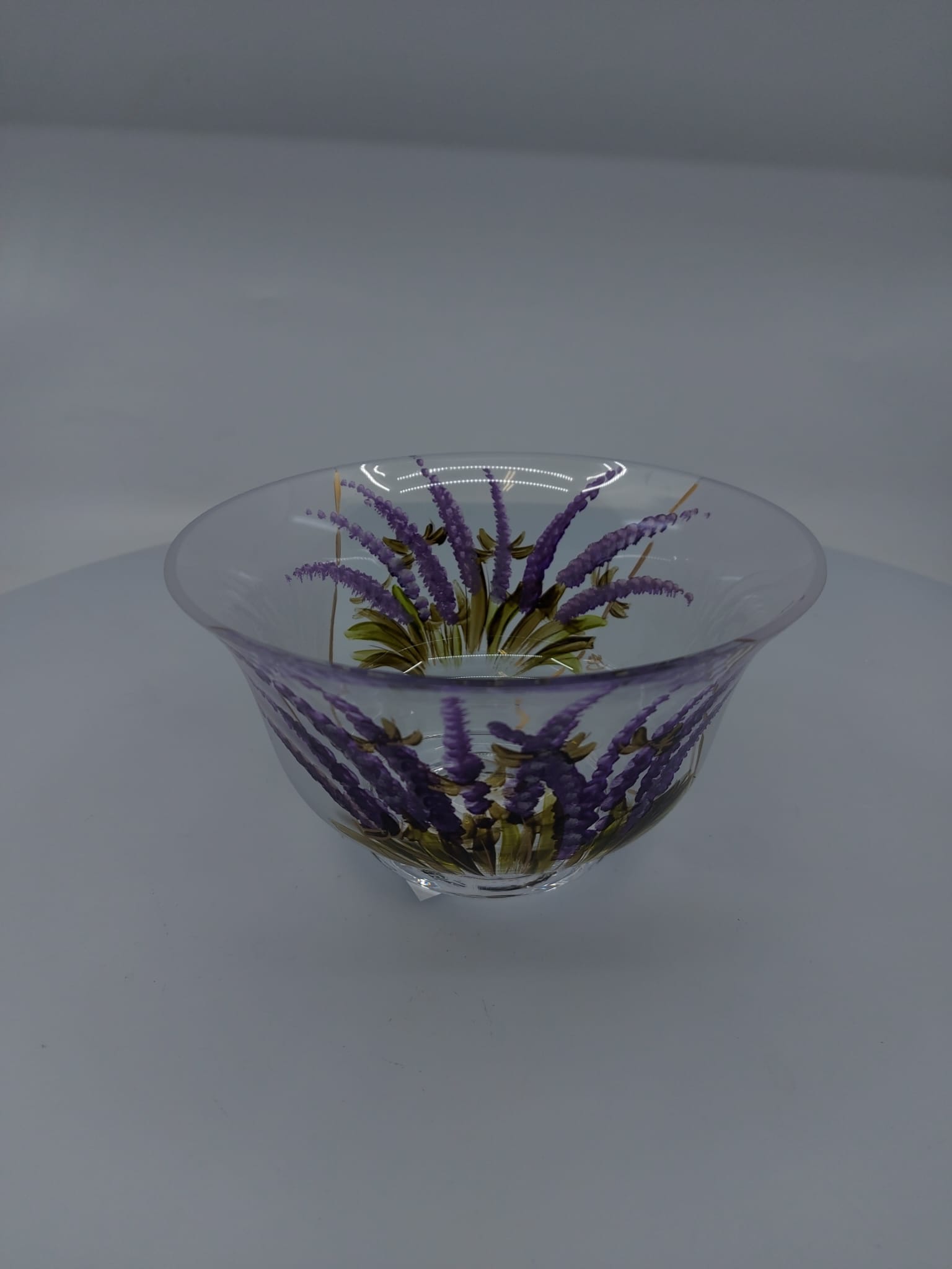 • Sklenená misa, svetlá, dekorovaná, LAVANDA