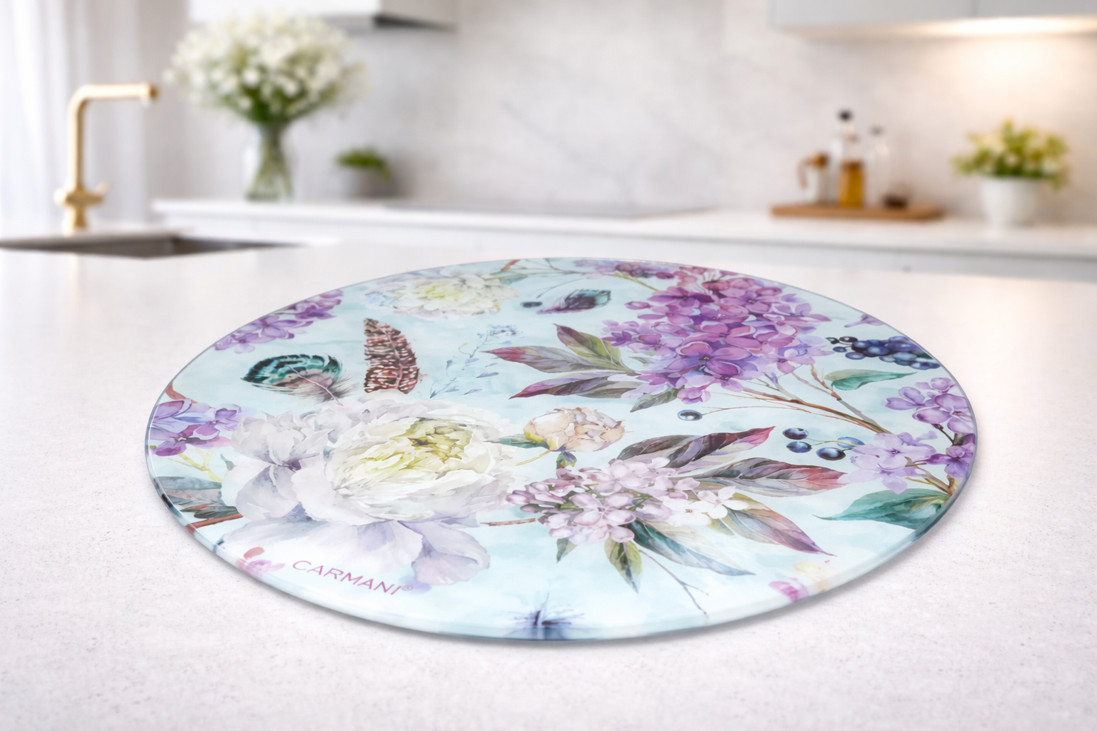 Sklenená podložka, kvety, okrúhla, 30 cm