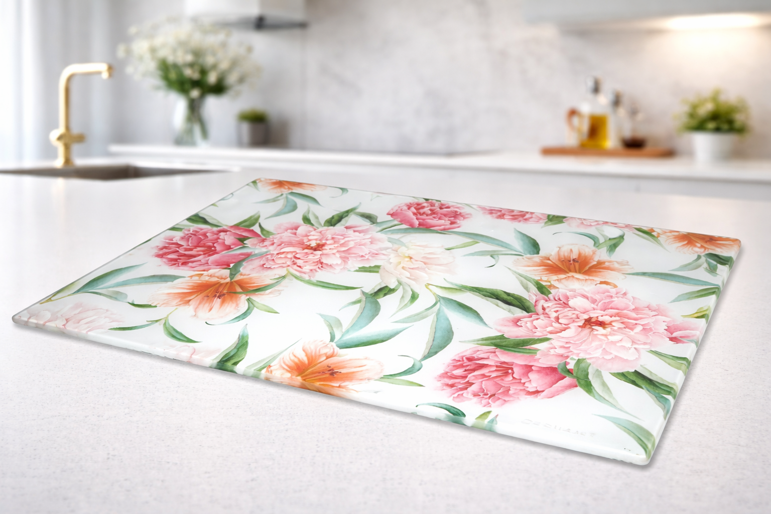 Sklenená podložka, kvety. svetlá, 40x30 cm