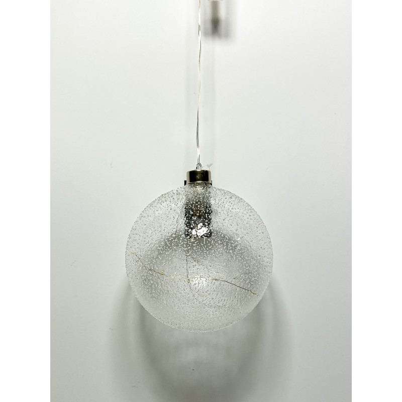 Sklenená guľa s LED svietením ako štýlová dekorácia na zavesenie do interiéru.  Táto krásna sklenená guľa skrášli váš domov počas vianočného obdobia.
