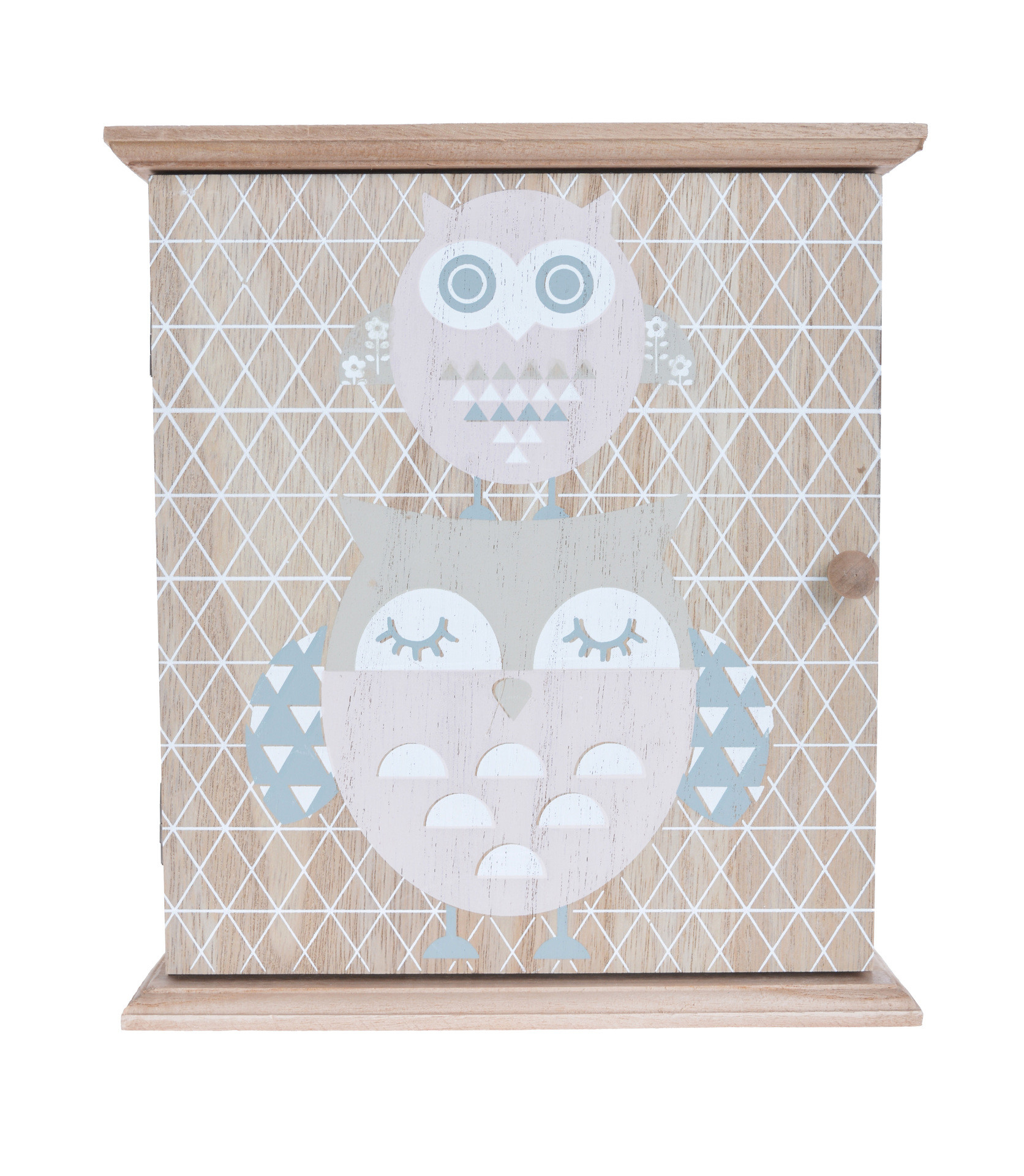 Drevená skrinka na kľúče so sovičkovým dekorom vo vintage štýle. Skrinka je vybavená 3 háčikmi na kľúče. Je ideálna dekorácia na stôl, alebo na stenu v domácnosti.