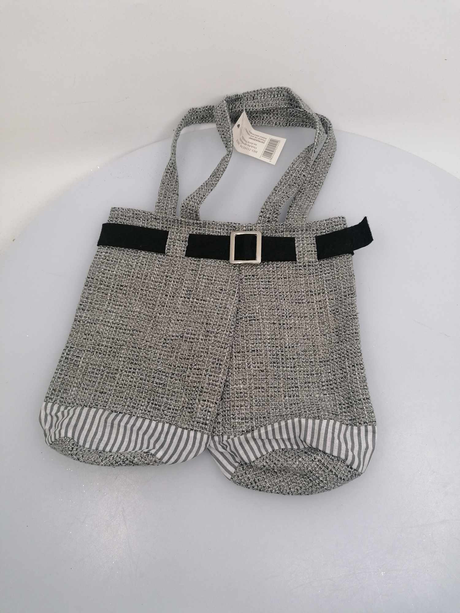 Dekoračná darčeková taška na 2 vínové fľaše. Ako kreatívne zábavne puzdro na fľaše v tvare sivých šortiek s opaskom.