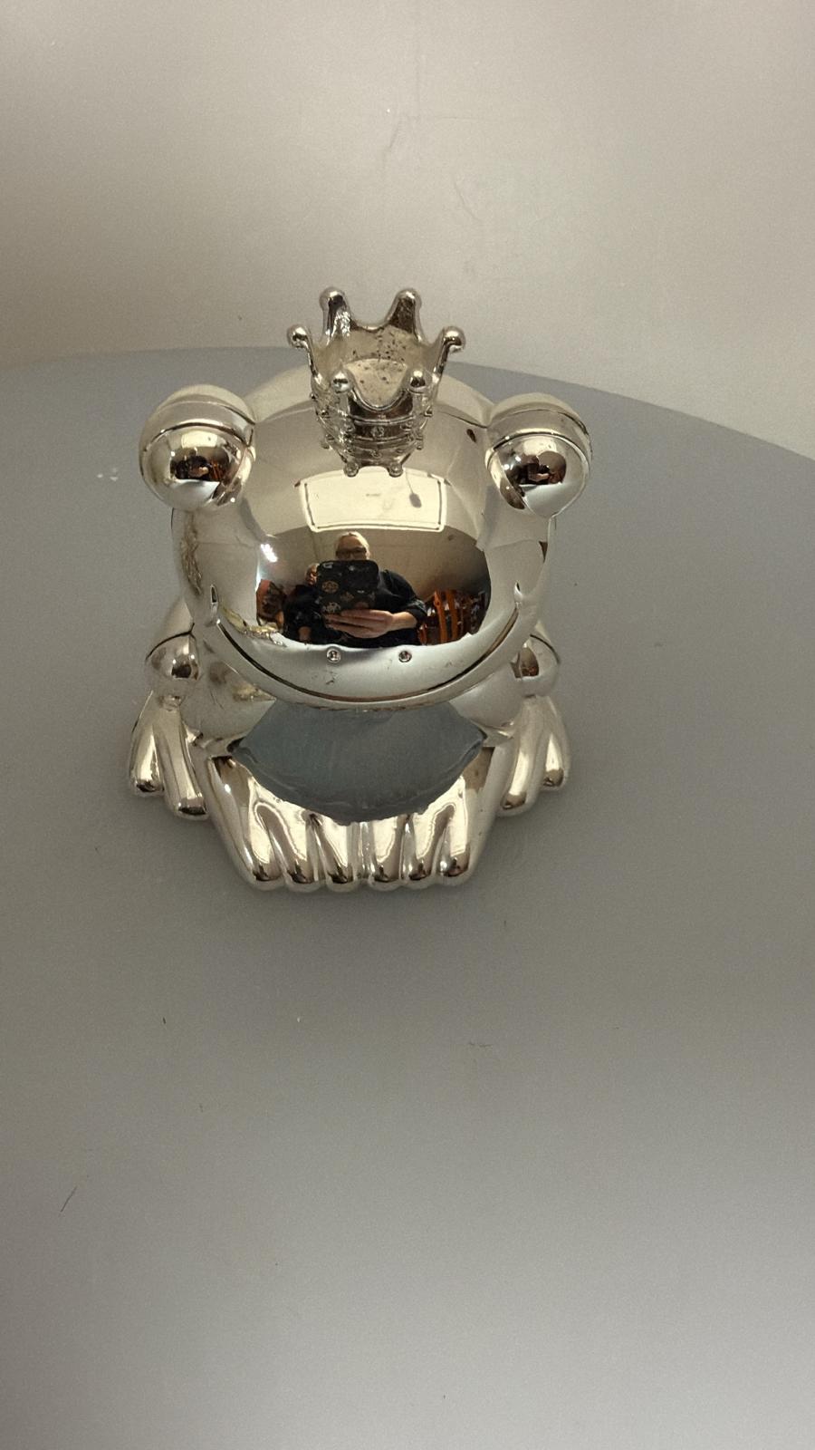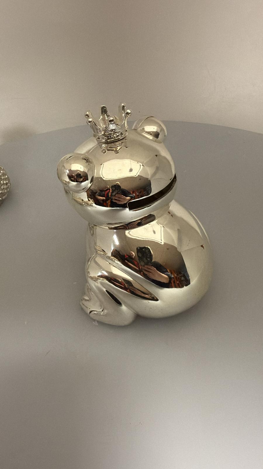 Strieborná žaba. pokladnička, 10 cm