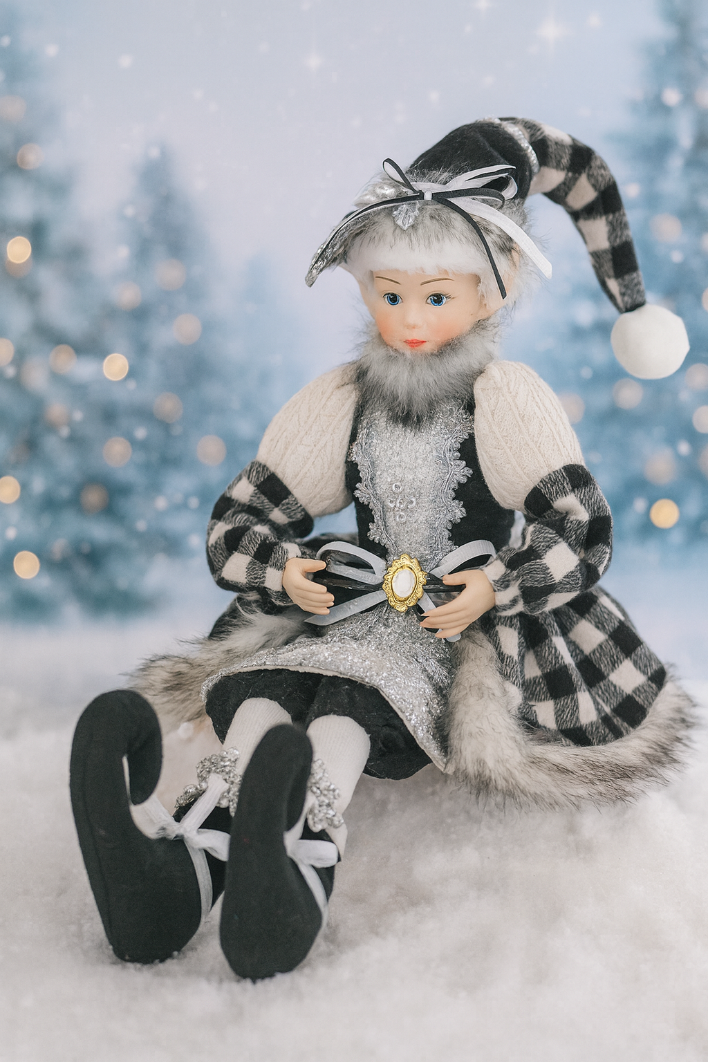 Vianočná dekoračná figúrka ELF, svetločierny, sediaci.