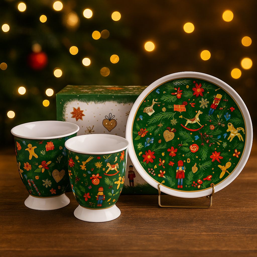 Vianočné dezertné taniere CHRISTMAS SPIRIT, farebné, v dekoratívnej krabičke, 2 ks v balení