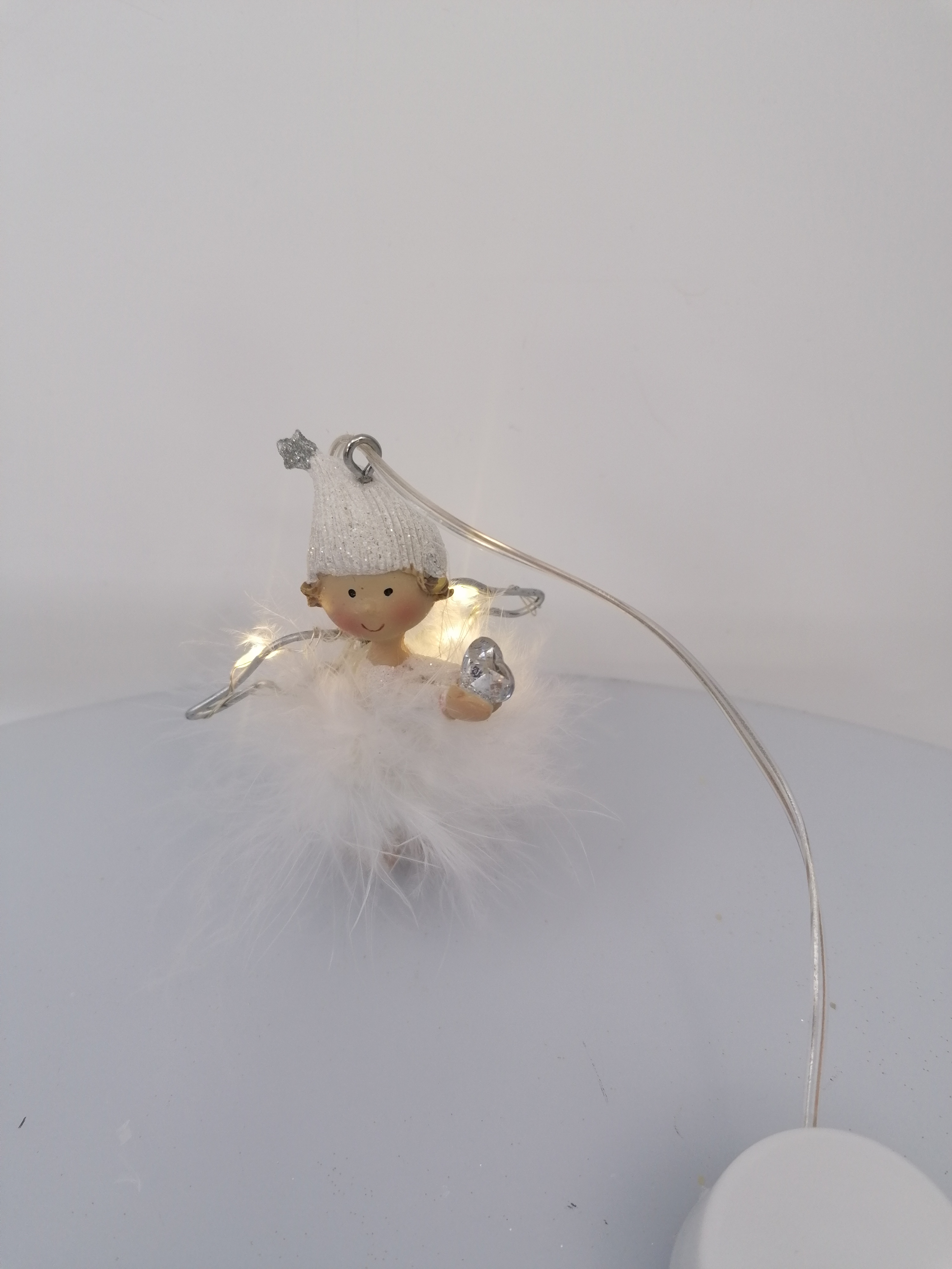 Vianočný anjel so srdiečkom 4x7x6cm, s LED krídelkami