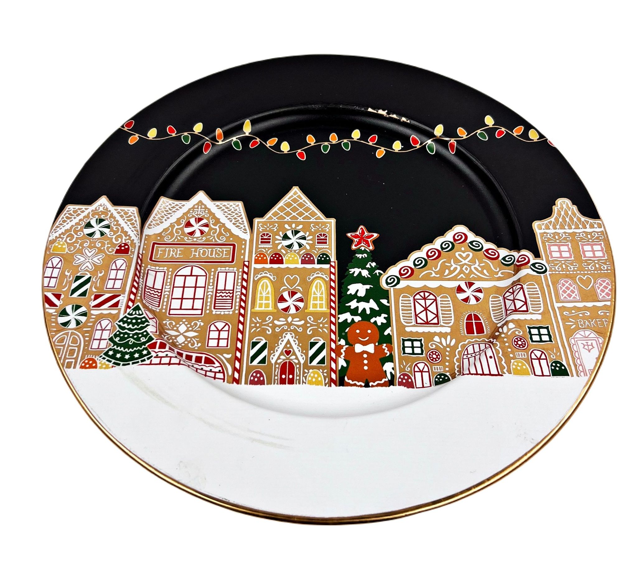 Vianočný dekoračný tanier, tmavý, plech, 33 cm