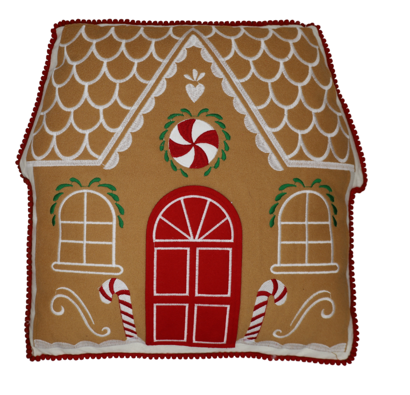Vianočný vankúš, dekorovaný, domček, perníkový, 41x42 cm