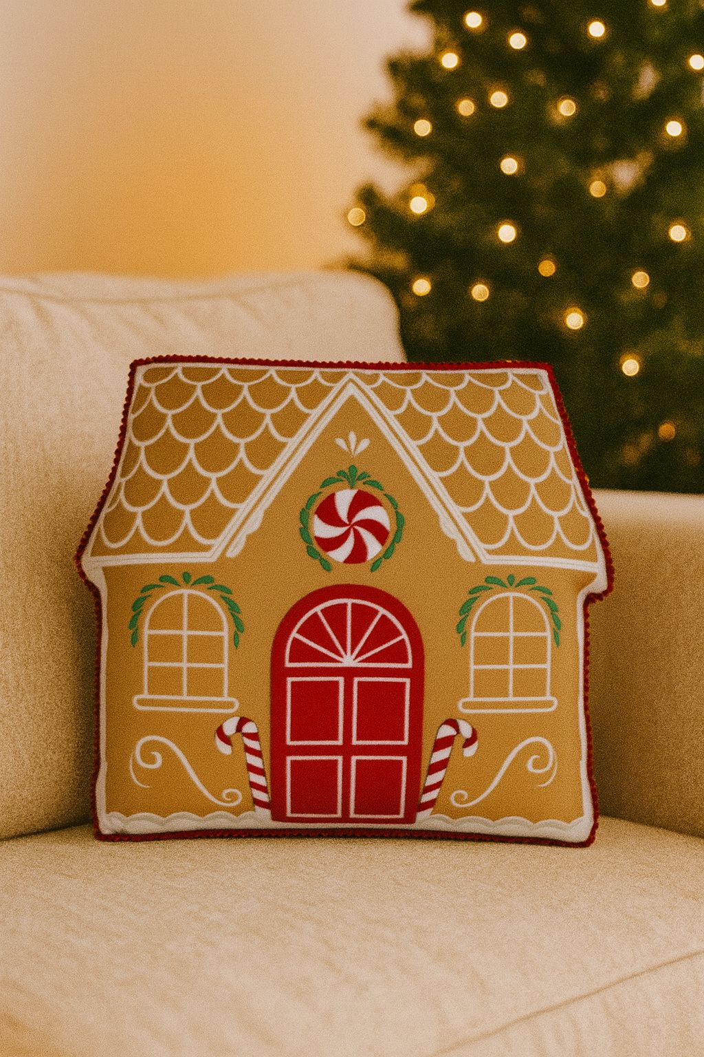 Vianočný vankúš, dekorovaný, domček, perníkový.