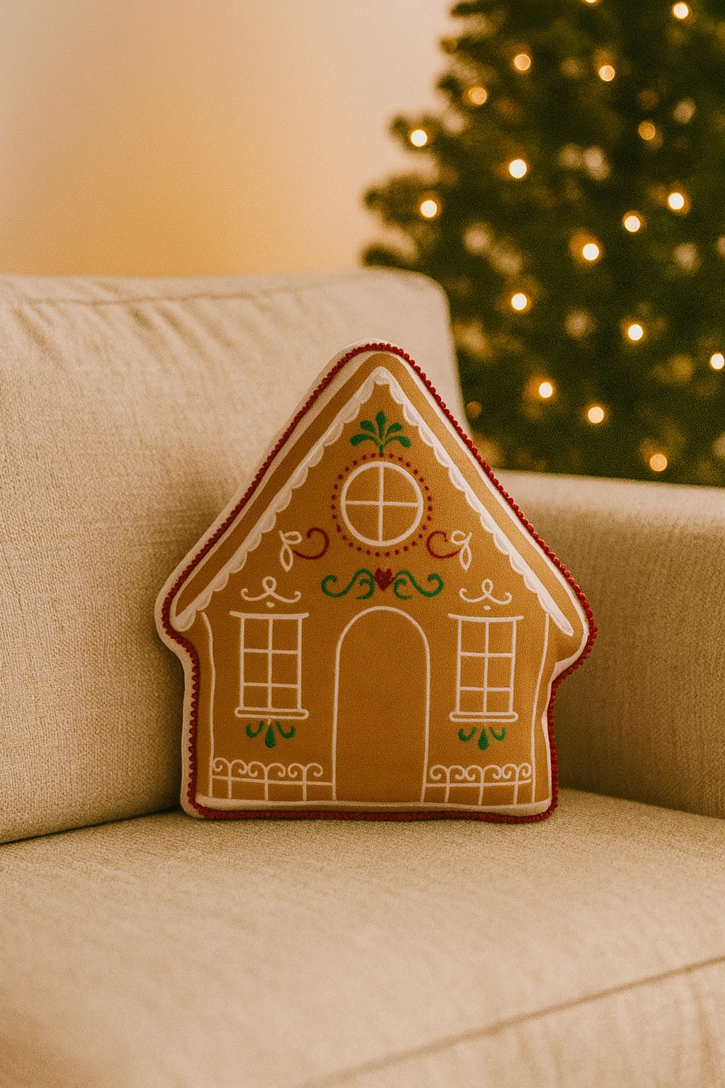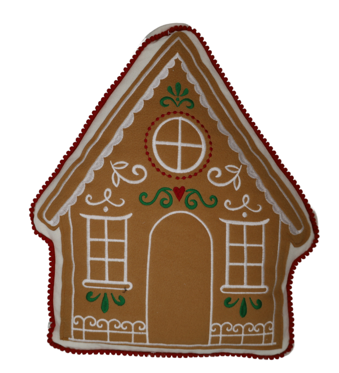Vianočný vankúš, dekorovaný, domček, perníkový, 43x47 cm